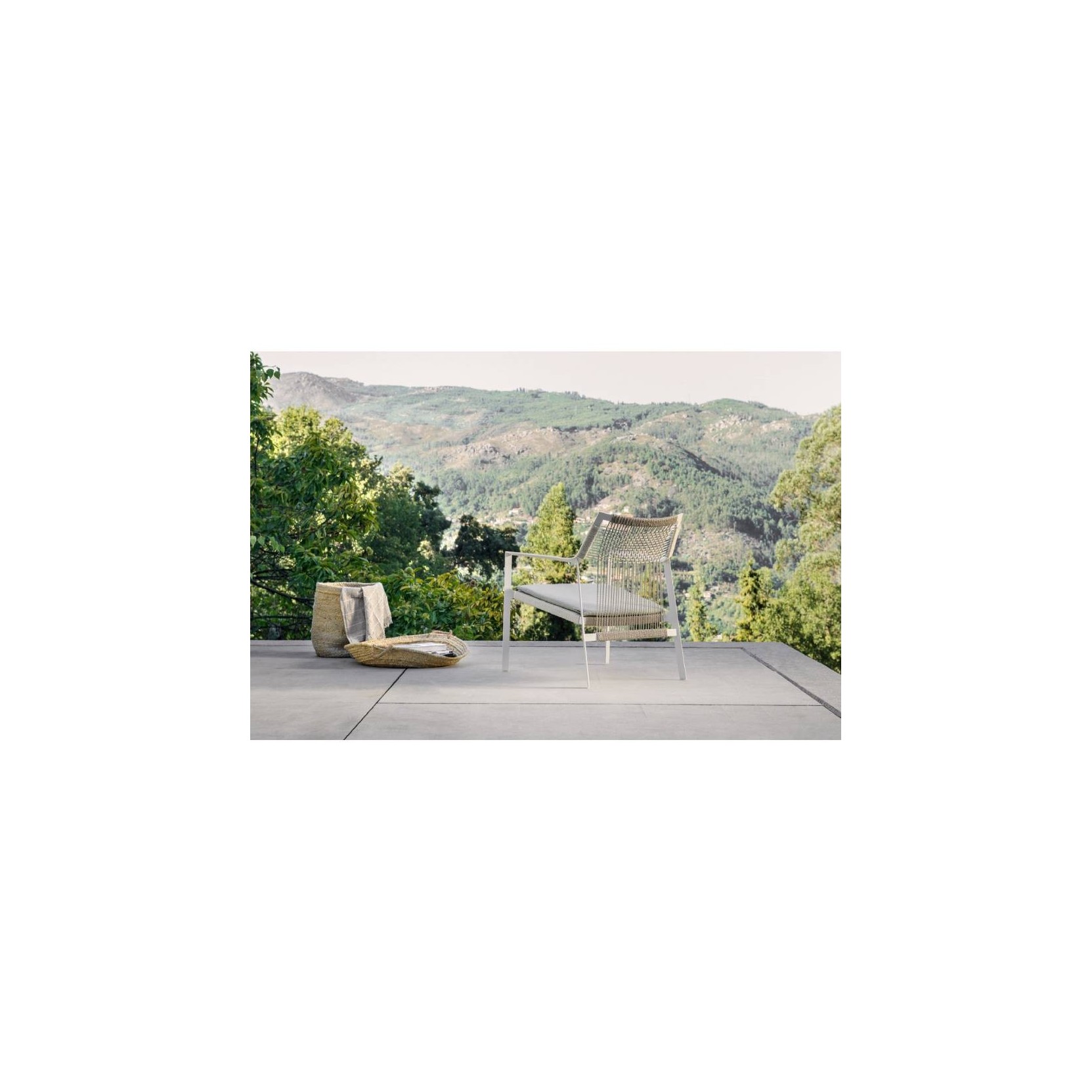 Italian designer Piergiorgio Cazzaniga does with the CTR collection what he is good at: making complex designs appear effortless. The frame of the chair is made of profiles in powdercoated stainless steel that are bent in one continuous line. The corners are straight, yet the tubes keep a round form, which requires great mastery. The backrest is attached to the frame at only 2 points and appears to float unsuspended above the seat. The open weave refers to the ancient tradition of weaving and gives flexible support to the back. The seat is upholstered with a water-repellent cushion which can be easily removed.