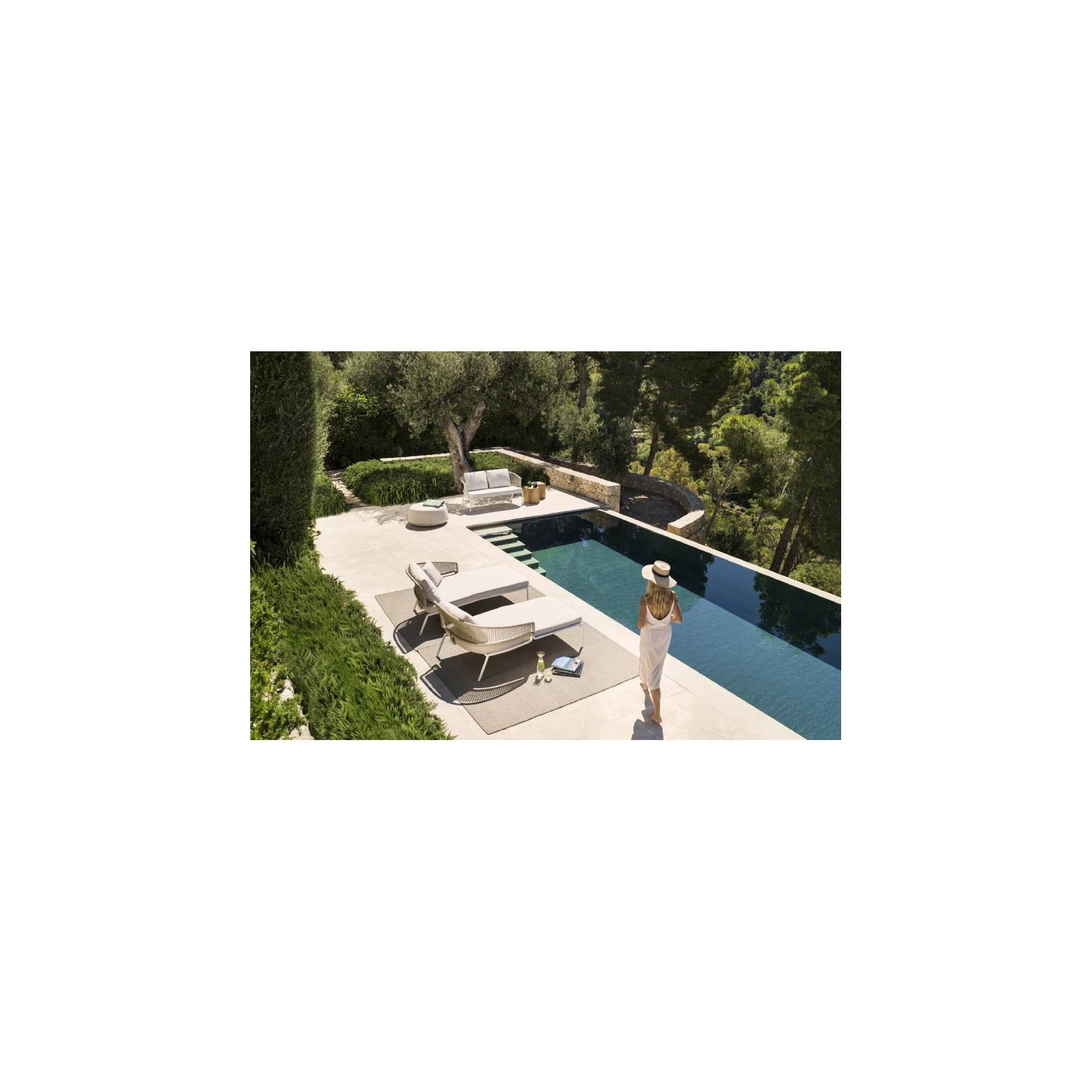 Italian designer Piergiorgio Cazzaniga does with the CTR collection what he is good at: making complex designs appear effortless. The frame of the sofa is made of profiles in powdercoated stainless steel that are bent in one continuous line. The corners are straight, yet the tubes keep a round form, which requires great mastery. The backrest is attached to the frame at only 2 points and appears to float unsuspended above the seat. The open weave refers to the ancient tradition of weaving and gives flexible support to the back. The seat is upholstered with a water-repellent cushion which can be easily removed.