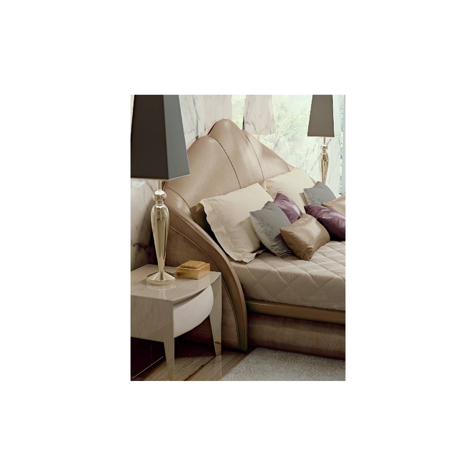 Waves bed from Stardust collection has a winding and modern design, the headboard shows a profile with waves that embraces part of the base making it the protagonist of the room. The bed is completely covered in leather or fabric. It is possible to play in contrast with materials and colours to make this focal point of the bedroom unique.