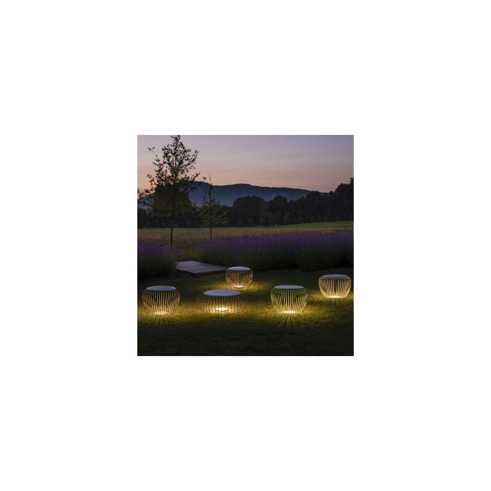 Meridiano 4710 is a outdoor lamp / pouf by Jordi Vilardell for Vibia, steel structure and glass diffuser. Meridiano radiates a comfortable light that plays with shapes and shadows, creating a luminous effect full of magic. In this manner, an approach also encourages emotional space, relying on the playful, recreation and enjoyment of nature. During the day, it hides its function as a lamp and looks like an ottoman or coffee table, dressing gardens, porches or swimming pools with a twist. In the evening, however, Meridian surprises thanks to the LED light source.