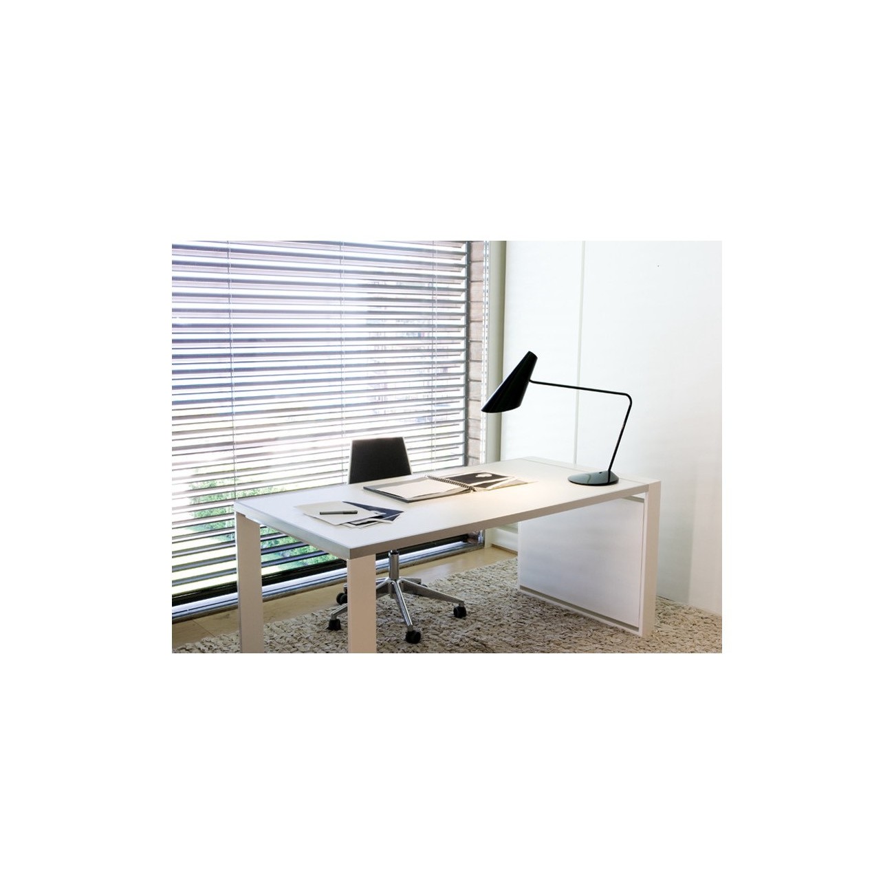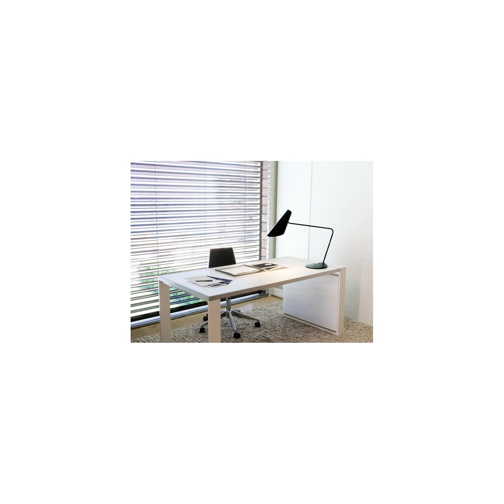 Balance is a floor lamp that also acts as a ceiling lamp functions, its design is an example of the result of the union between style and technique; in fact, Thanks to a small pull chord located at the bottom of the aluminium-weft shade, which also serves as a switch, the shade can be moved to the right or left and up and down while remaining parallel to the floor at all times. Balance is available in two models with different length arm: 260 cm, for the 5189 model, or 215 cm, for the 5192 model; and with three different finishes chrome, lacquered matt graphite, matt nickel.