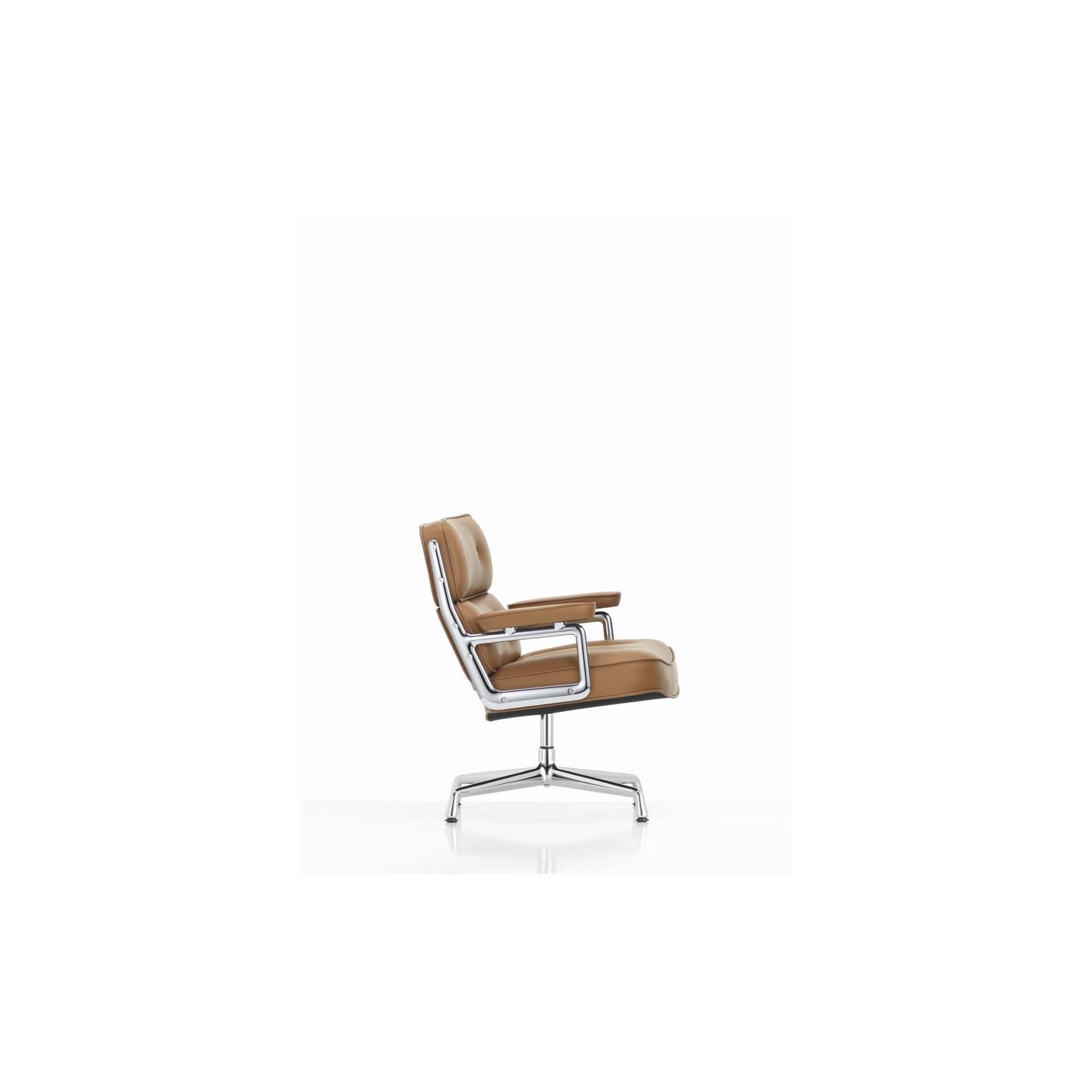 The structural design of the Lobby Chair makes it comparable to the Lounge Chair in terms of comfort. It consists of three individual cushions joined together by aluminium side frames. The armchair was originally conceived to furnish lobby areas in New York's Time Life Building. In the following years, different versions were created that all have one fundamental thing in common: exceptional comfort. The Lobby Chair is available in three versions: the ES 104 office swivel chair, the ES 108 conference chair on glides, and the wider and lower ES 105 armchair for lounges and waiting areas.