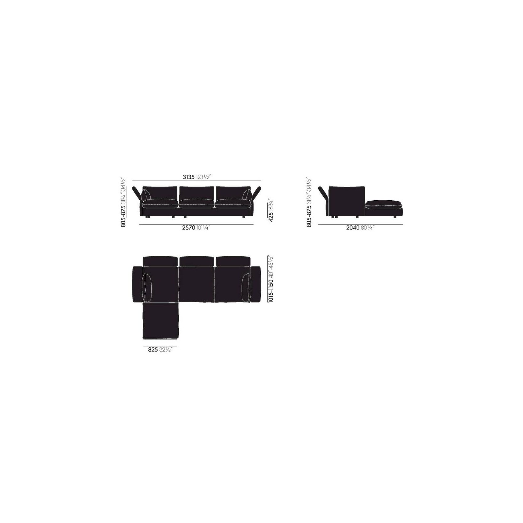 The Mariposa sofas offer solutions for a wide range of requirements in regard to size and spatial planning: the Mariposa Love Seat provides spacious seating for one person or – as the name suggests – a cosy spot for two love birds. The Mariposa 2-Seater is an ideal choice for small, urban apartments where it offers full comfort despite its compact dimensions. These two models come with one continuous seat cushion – in contrast to the larger 2½-seater and 3-seater versions of Mariposa: fitted with two seat cushions, these sofas invite users to stretch out lengthwise and use the adjustable armrests as a back or neck rest – for instance, as a relaxing place to read or take a nap.