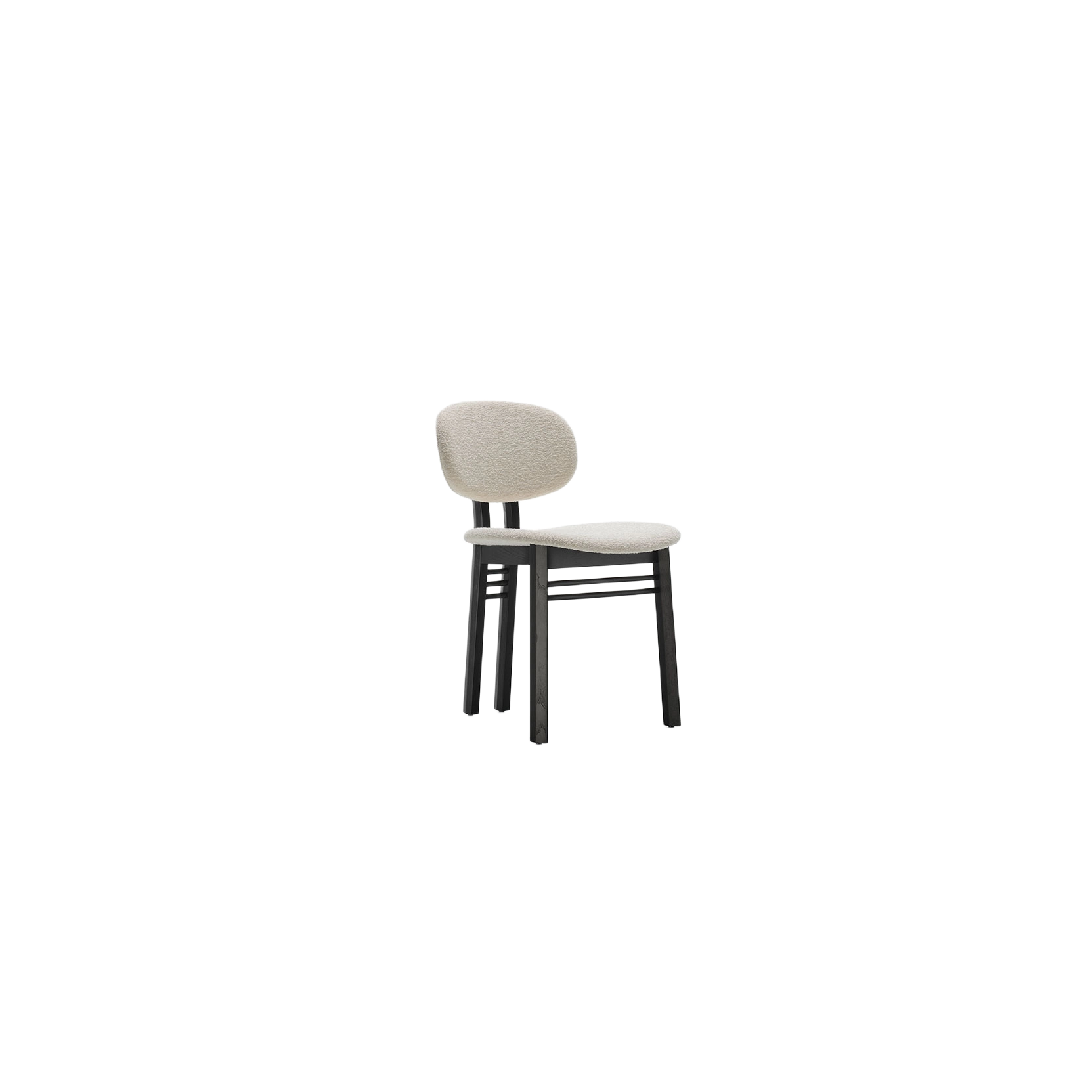 Med, progettata da Lodovico Acerbis e Giotto Stoppino per Acerbis nel periodo 1983-2022, presenta una struttura in legno massello di frassino nelle colorazioni tinto nero o tinto noce scuro, con schienale e sedile realizzati in multistrato curvato, imbottitura in poliuretano espanso e rivestimento in tessuto disponibile in diverse finiture, che avvolge integralmente le superfici senza possibilità di rimozione. Le dimensioni compatte – 42 cm di larghezza, 50 cm di profondità, 77 cm di altezza totale e 46 cm di altezza seduta – la rendono ideale per tavoli da pranzo o composizioni coordinate, evocando dettagli iconici come la sezione delle gambe ispirata al Flatiron Building.