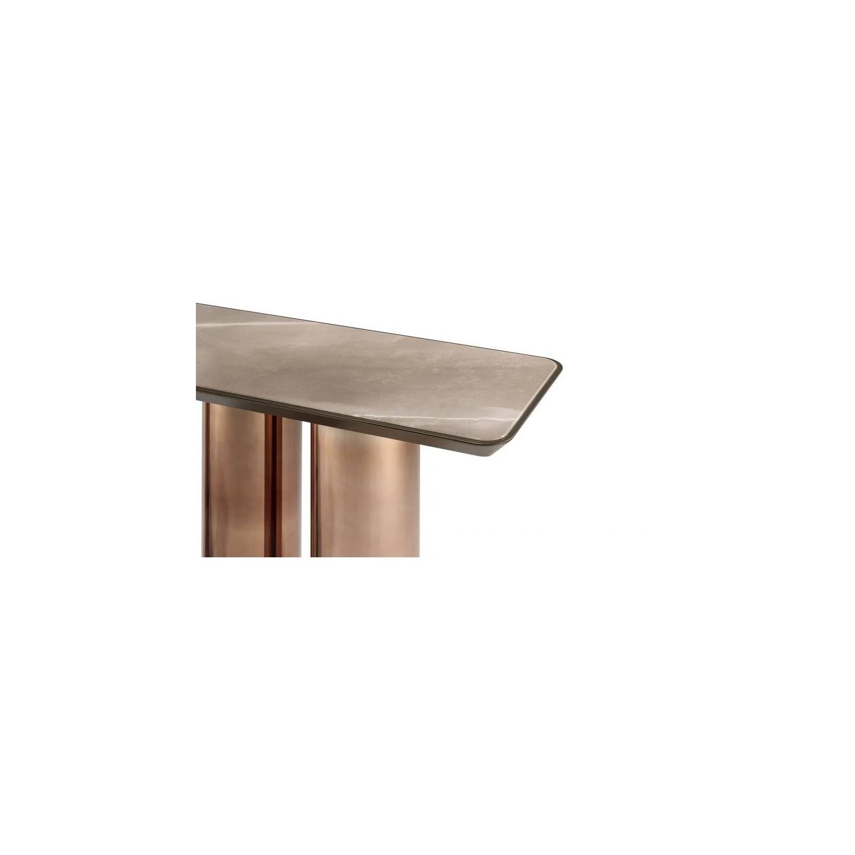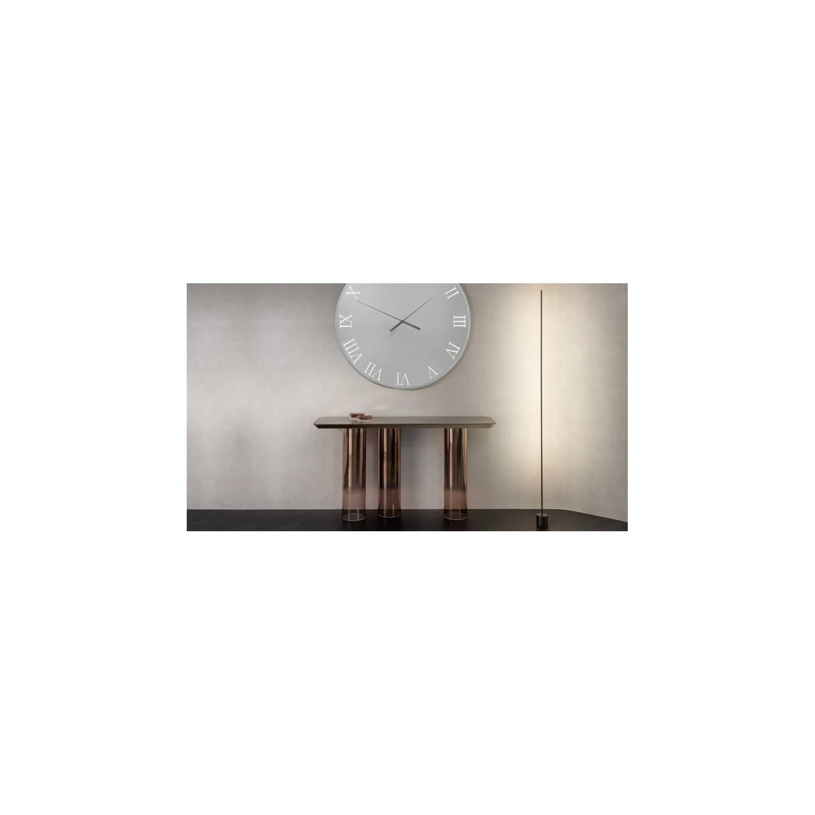 Console a tre cilindri in vetro borosilicato con finitura sputtering sfumata Bronzo, Argento o Rame. Piano Bevel - Vetro Marmo sp. 40 mm con bordo Bronze e copertura in MarmoReflex o in vetro trasparente spessore 12 mm filo lucido.Spedizione 5-6 settimane lavorative