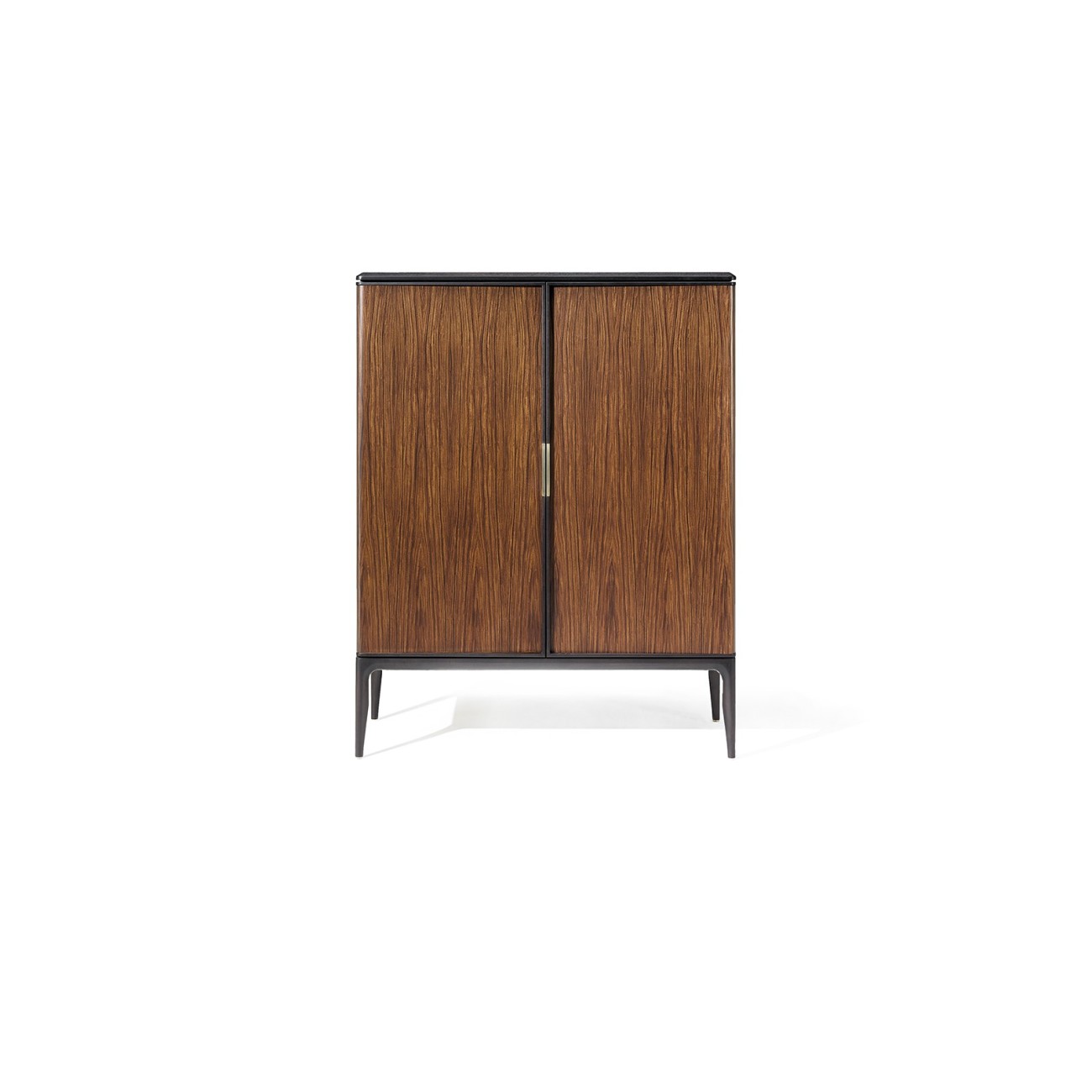 La linea Oblique rappresenta l’incontro tra design sofisticato e funzionalità. La struttura e la base sono realizzate in massello di noce americano, mentre le ante, i fianchi e i frontali dei cassetti possono essere scelti in noce, palissandro, ebano, pelle o laccato opaco, con possibilità di personalizzazione tramite colori NCS o RAL. L’interno dei mobili è organizzato con mensole in vetro fumé e, a seconda della configurazione, anche con cassetti interni rivestiti in pelle o tessuto, e arricchiti da divisori in ebano. Le varianti includono versioni alte a due ante e basse a tre cassetti o quattro ante, ciascuna dotata di illuminazione LED automatica all'apertura. Il piano superiore può essere in legno, vetro colorato o marmo, offrendo un’ampia gamma di finiture per adattarsi a ogni ambiente. Oblique si completa con accessori raffinati, come pannelli interni in tessuto e divisori in legno pregiato, pensati per esaltare estetica e funzionalità.
