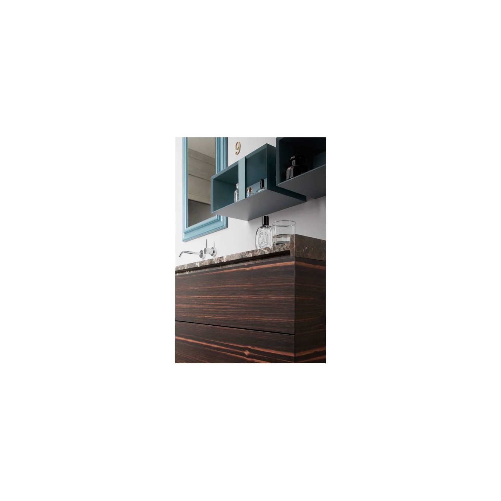 Dongiovanni è un lavabo sospeso il legno Ebano ad olio e piano in marmo Emperador disegnato da Alessio Bassan per Capod'Opera. Completo di rubinetteria e lavabo sottopiano, la base contiene due cassetti e due ante. Dongiovanni è soprendente per l'uso intelligente dei materiali che conferiscono a questo mobile una texture del tutto particolare. Un lavabo che conquista decisamente l'attenzione e che si presenta come il vero protagonista del vostro bagno. Eleganza e stupore caratterizzano il design di questo arredo valorizzato al massimo dalle venature del marmo.