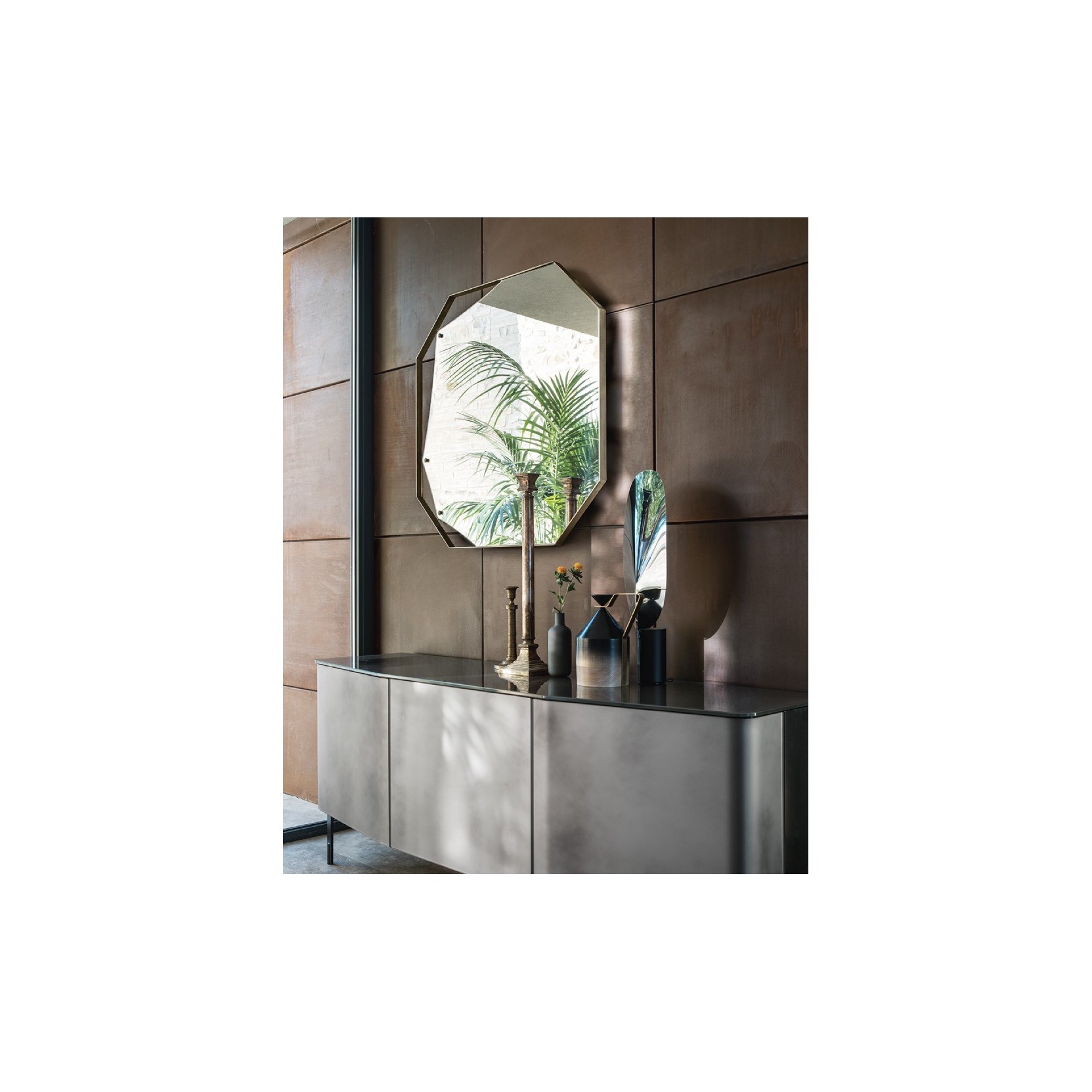 Collezione di specchi da terra o da parete con cornice in metallo finitura ottone brunito, specchio piano da 5 mm.Spedizione 5-6 settimane lavorative