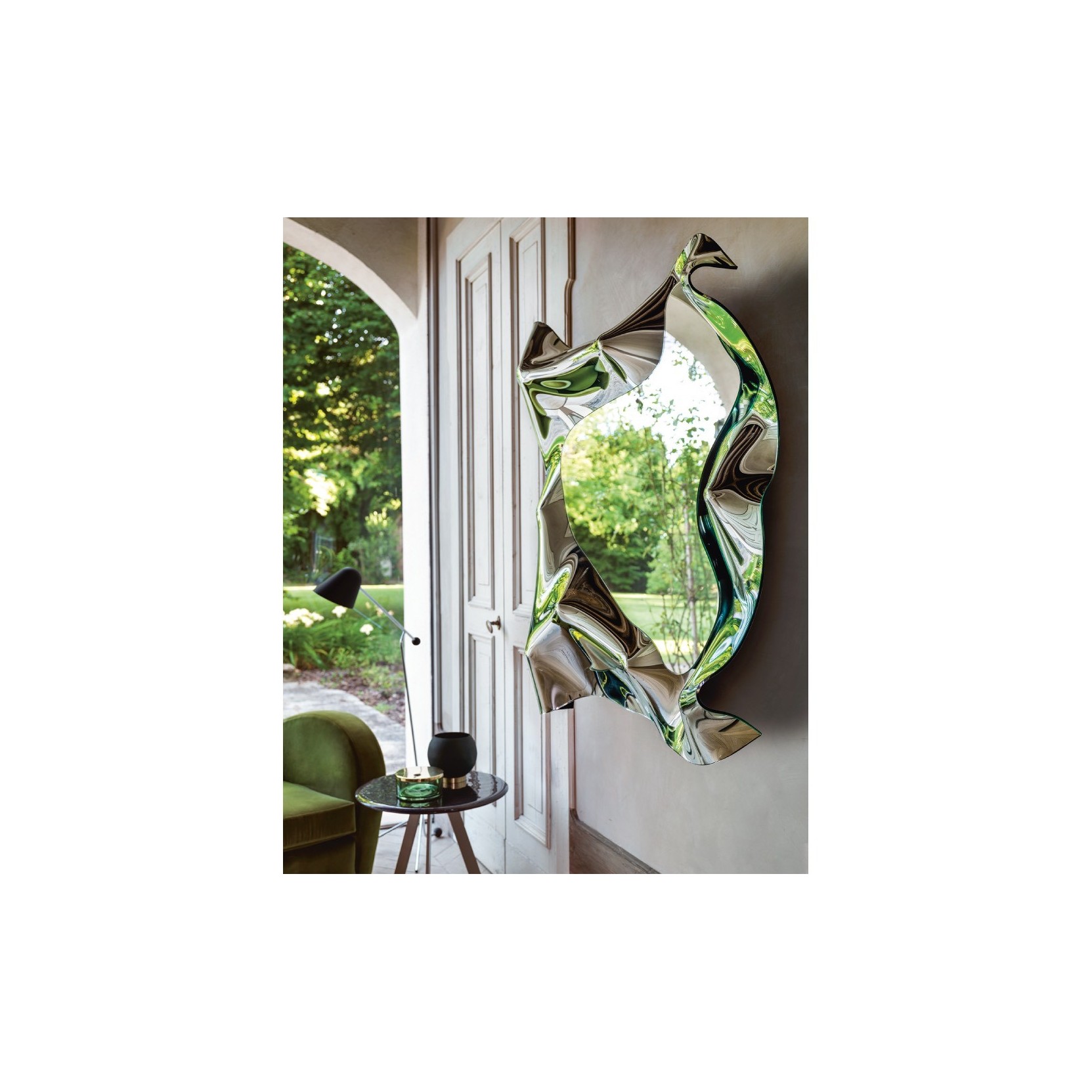 Specchio da parete in vetro fuso da 6 mm retro argentato, specchio piano da 5 mm. Telaio posteriore in metallo verniciato. Possibilità di appendimento in diverse posizioni.Spedizione 5-6 settimane lavorative