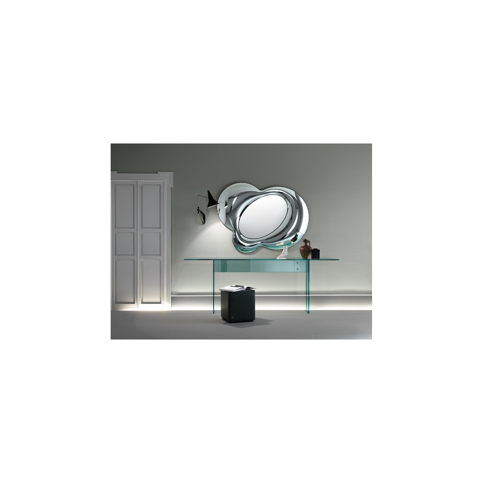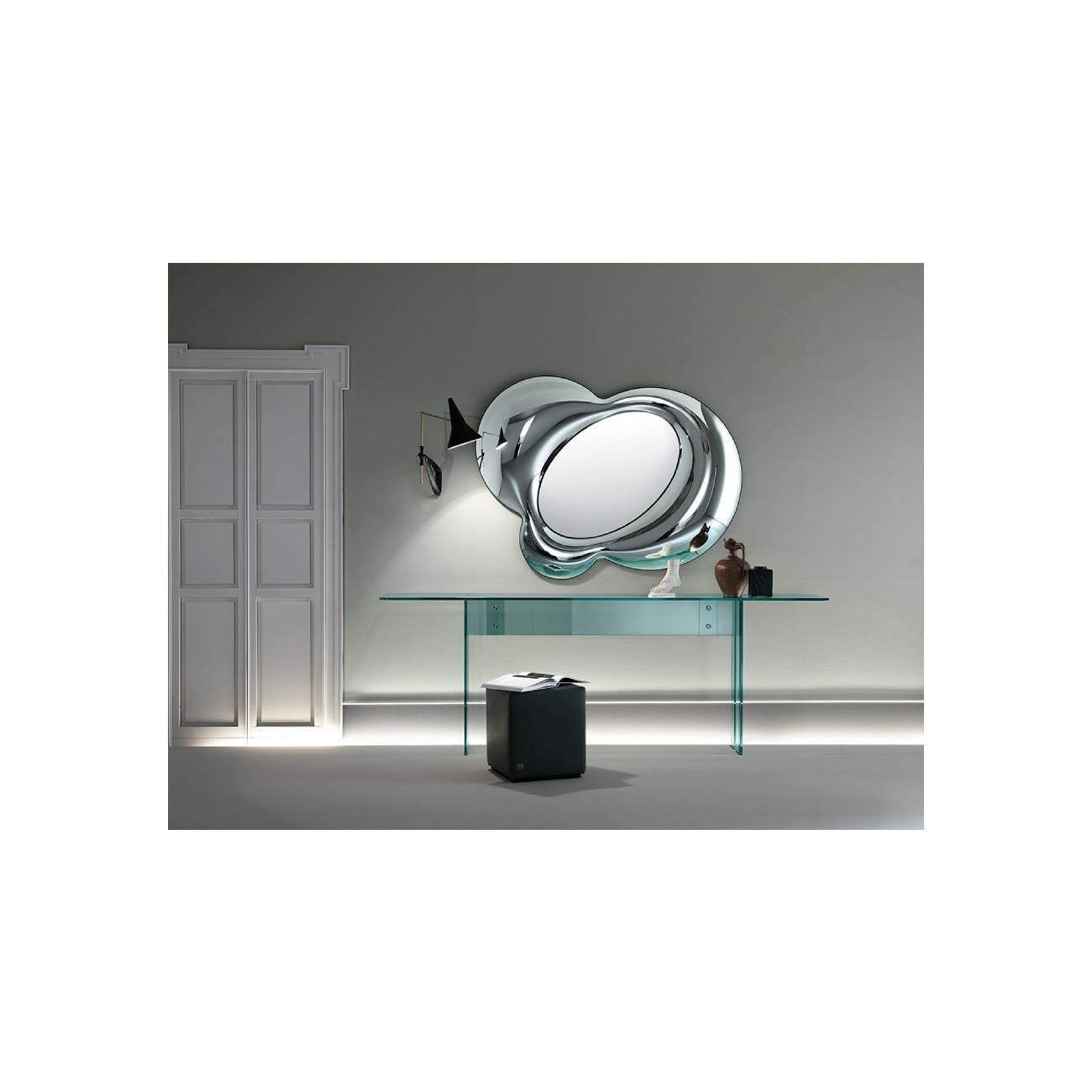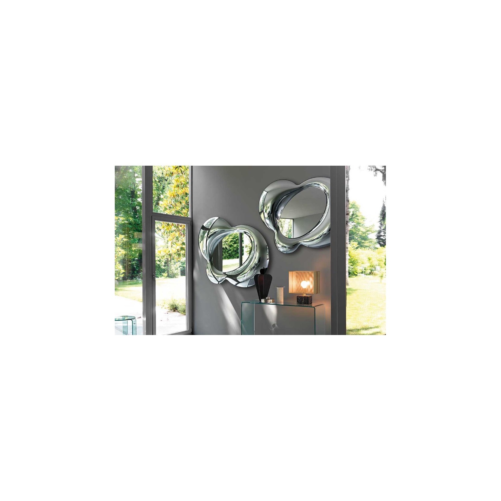 Specchio da parete in vetro fuso da 8 mm retro argentato, specchio piano da 5 mm. Pannello di fissaggio posteriore con possibilità di appendimento in diverse posizioni.Spedizione 5-6 settimane lavorative