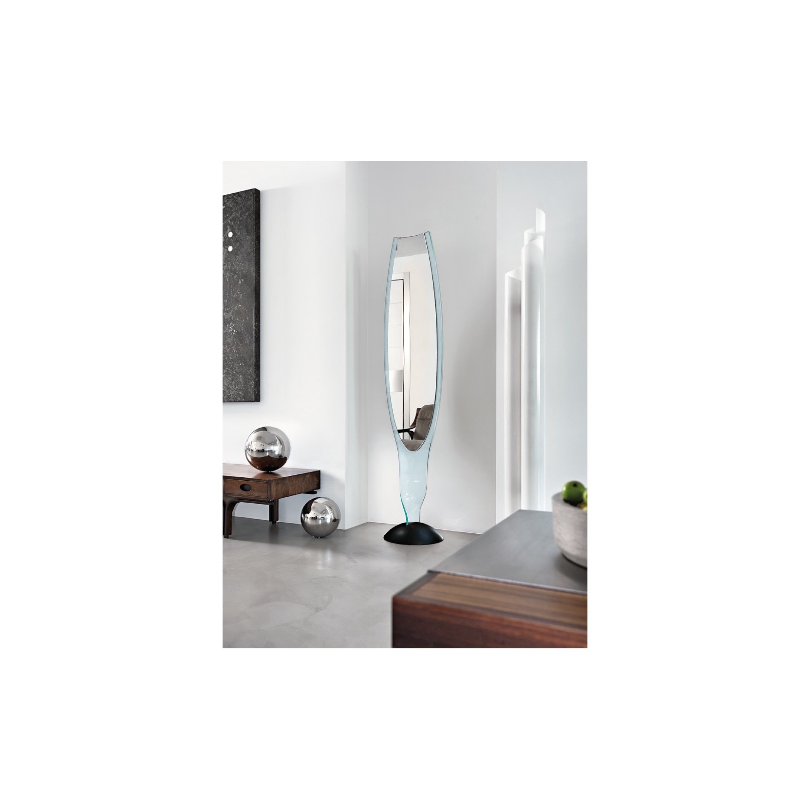 Specchio bifacciale in vetro curvato da 12 mm con base a calotta sferica rivestito in ABS nero goffrato.Spedizione 5-6 settimane lavorative