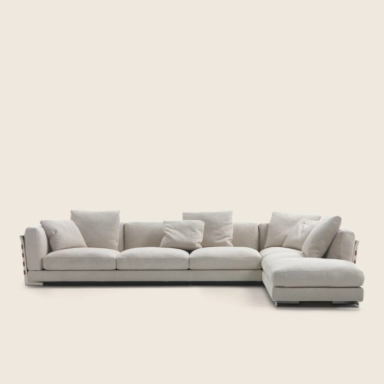 Disegnato per occupare una posizione centrale nello spazio living, il divano Cestone ribalta le consuete gerarchie formali enfatizzando elementi solitamente secondari come schienale e braccioli, trasformandoli in protagonisti del progetto.
