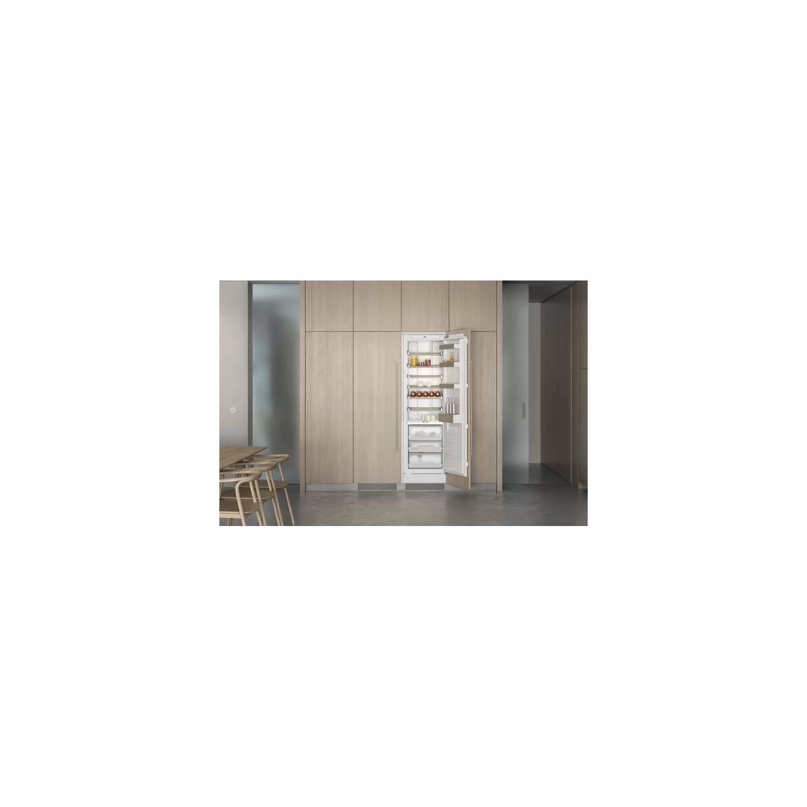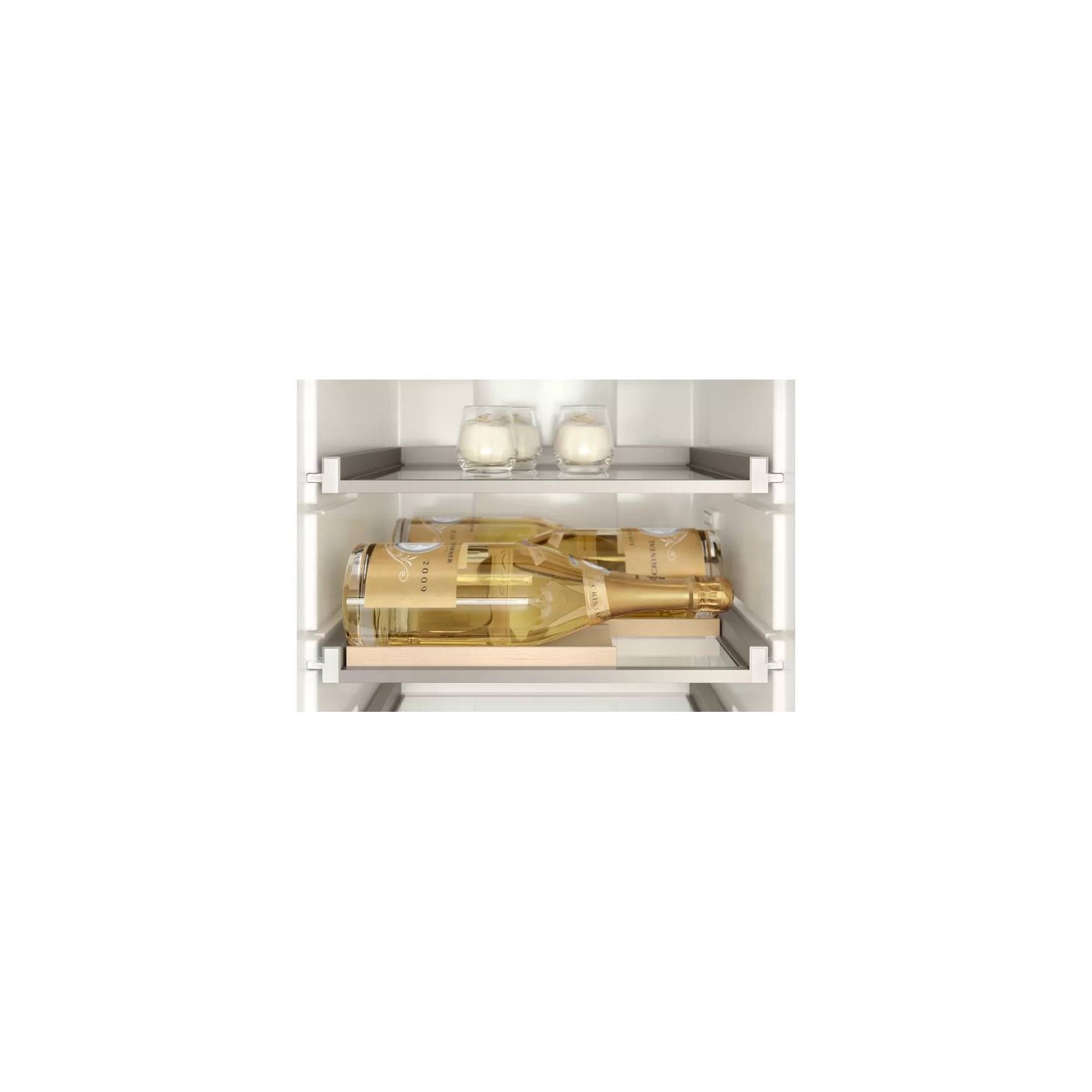 RC289300 Frigorifero Vario 200 series. Interni con eleganti elementi in alluminio e finitura Gaggenau Light Bronze Ripiani e cassetti estraibili Sofisticato sistema di illuminazione 3 zone climatizzate incluse 3 zone Fresh Cooling vicino a 0°C. Ripiani in vetro infrangibile, regolabili in altezza ed estraibili, con solidi profili in alluminio.