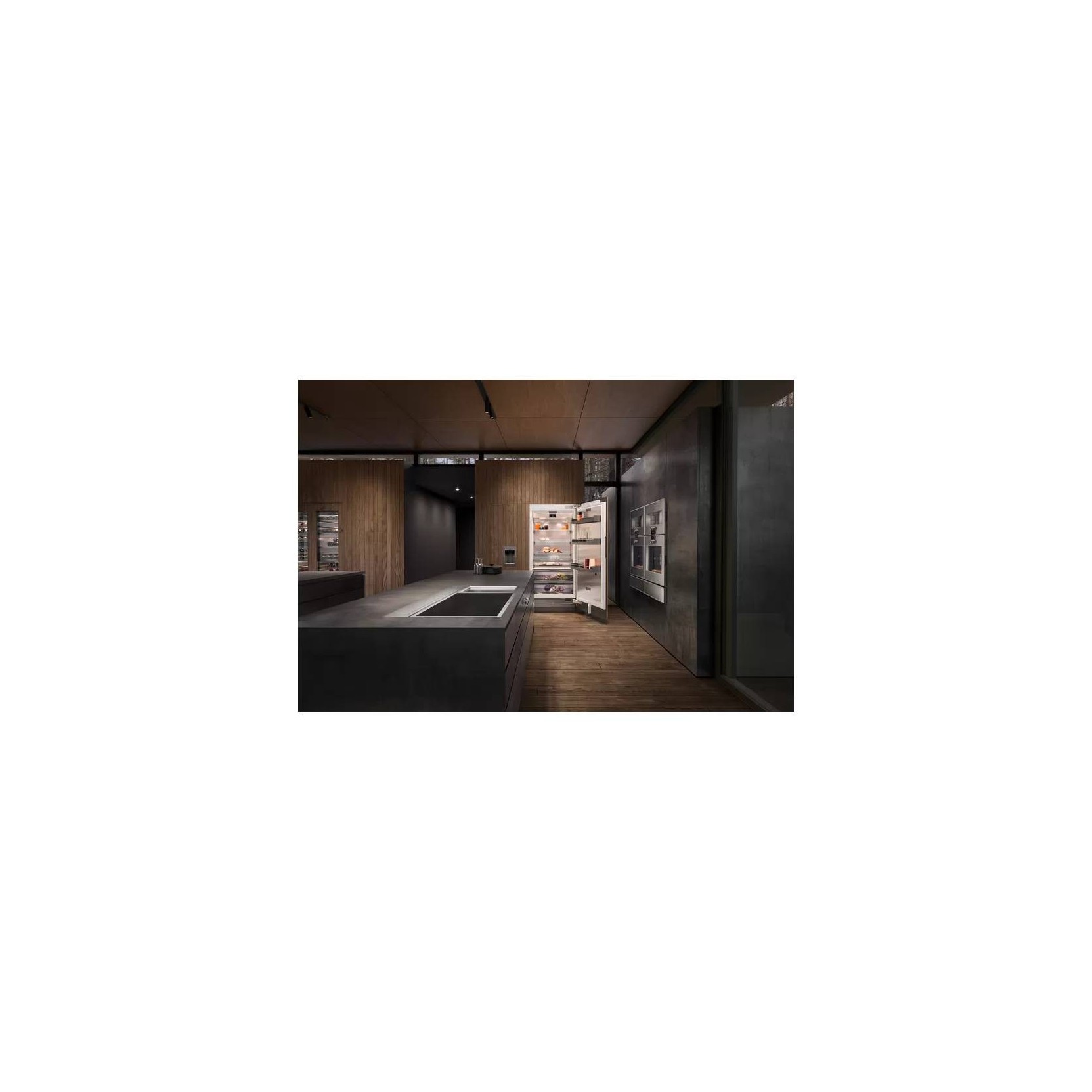 RC492305 Frigorifero Vario, 400 series. Interni in acciaio inox e solidi elementi in alluminio color antracite Punti di illuminazione con luce a LED calda e anti-abbaglio Porte dotate di Open Assist in due modalità: 1. Funzione Push-to-Open per integrare il frigo in composizioni senza maniglia 2. Funzione Pull-to-Open per facilitare l'apertura tramite maniglia