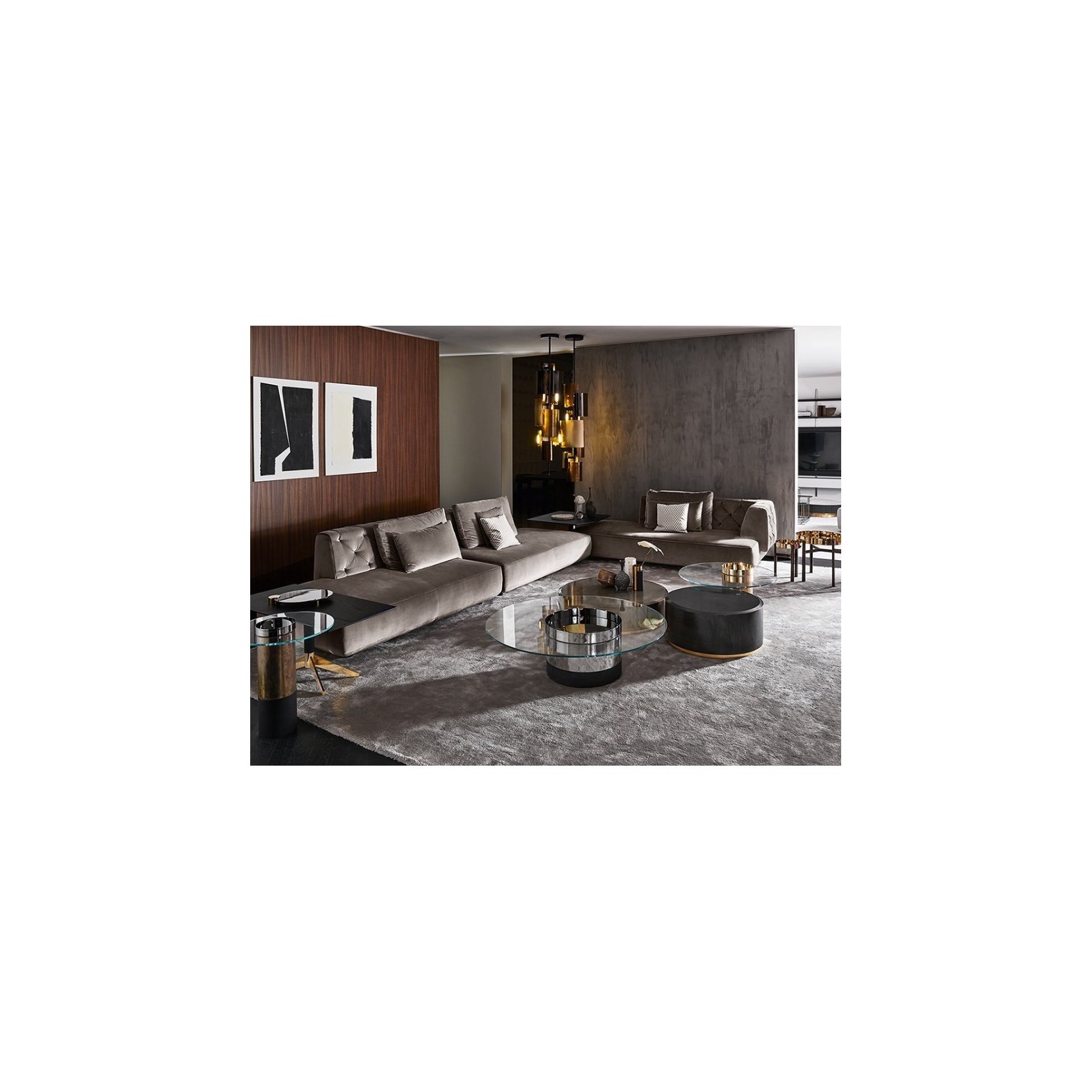 Divano modulare in poliuretano espanso indeformabile a densità differenziate e fibra poliestere con struttura interna in legno. Schienale lavorato in capitonnée. Cuscini misto piuma. Disponibile con rivestimento in tessuto o pelle nei colori del campionario. Cuscini decorativi su richiesta.Spedizione 5-6 settimane lavorative