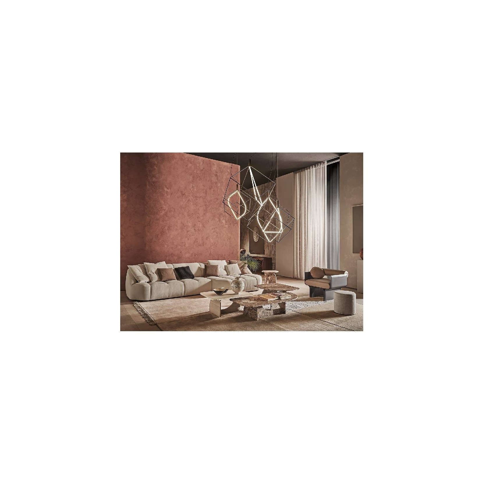 Divano modulare in poliuretano espanso indeformabile a densità differenziate e fibra poliestere con struttura interna in legno. Piedi in legno laccato nero. Disponibile con rivestimento in tessuto o pelle nei colori del campionario. Non sfoderabile. Tavolino in legno laccato color fango disponibile su richiesta. Disponibile anche con top in marmo Travertino Romano spazzolato naturale (non resinato), Calacatta Vagli Oro lucido naturale o Emperador Brown spazzolato. Moduli non vendibili singolarmente. Su richiesta rivestimento sfoderabile escluso Cat. L1, L2 e pelle cliente/C.O.L. Per la realizzazione di con rivestimento in pelle sono necessarie cuciture aggiuntive rispetto agli elementi con rivestimento in tessuto.