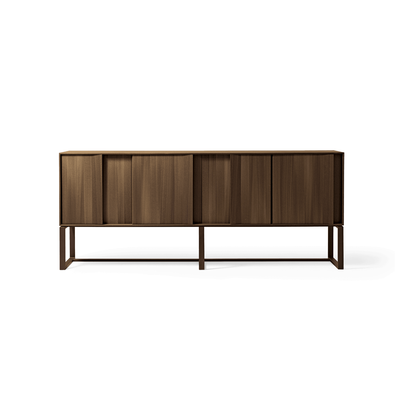 Origami, progettato da Massimo Castagna per Giorgetti, è un mobile contenitore caratterizzato da una struttura in eucalipto con frontali disponibili in vetro, cuoio o eucalipto.