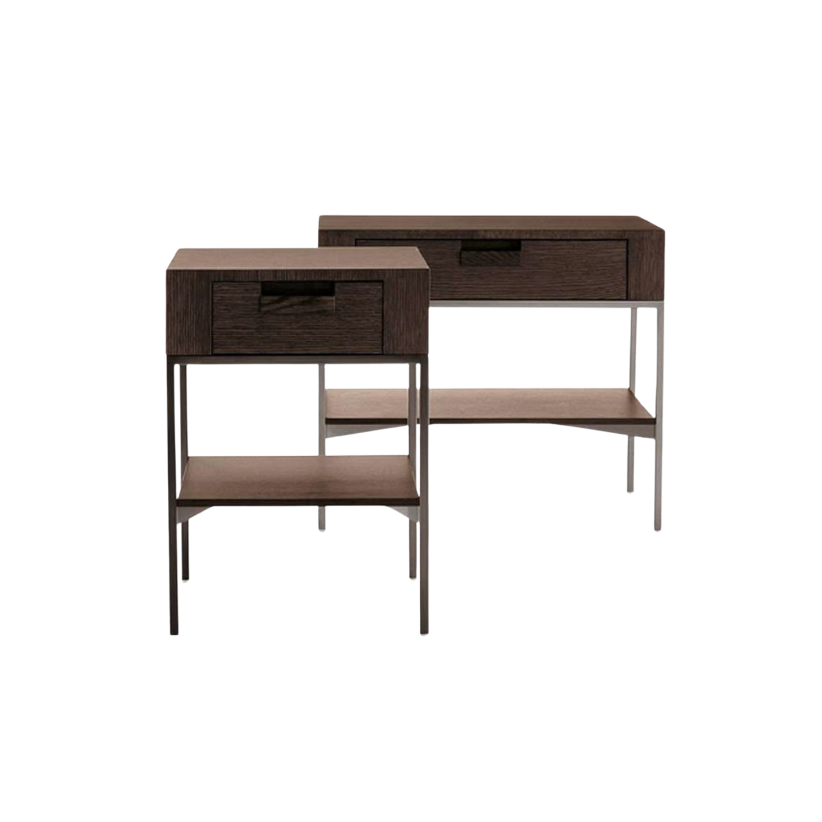 La collezione Ebe, caratterizzata da un design a doppio ripiano con cassetto, si adatta splendidamente sia all'ambiente del soggiorno, accanto al divano, che alla camera da letto. È proposta in diverse finiture di legno, tra cui rovere grigio, rovere chiaro spazzolato, rovere nero spazzolato e Sucupira. La struttura è disponibile in forme rettangolari o quadrate e si distingue per le due opzioni di finitura: acciaio cromato lucido o verniciato in nickel bronzato, che conferiscono un tocco di eleganza e modernità.