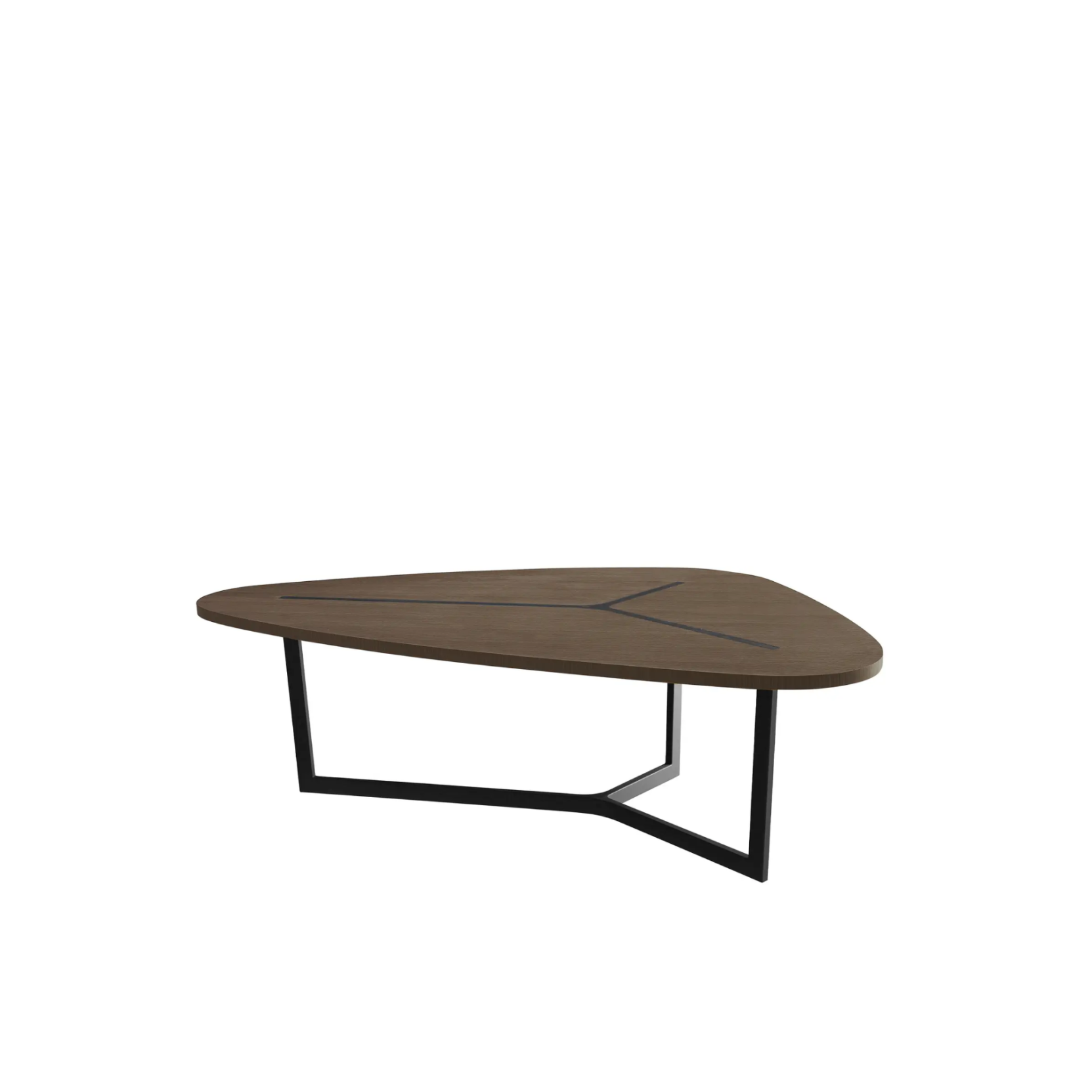 Tre lati asimmetrici offrono una proposta innovativa rispetto alla disposizione classica. Con una capacità di accogliere fino a sette persone, nella configurazione 3+2+2, il divano si adatta a diversi stili grazie alla possibilità di scegliere tra una finitura in legno o laccata, che ne modifica l'aspetto pur mantenendo il design distintivo della struttura a tre diramazioni. Questo elemento si proietta sul piano, creando un elegante decoro grafico che può essere in contrasto o in armonia con il resto dell'arredamento, a seconda delle scelte cromatiche.