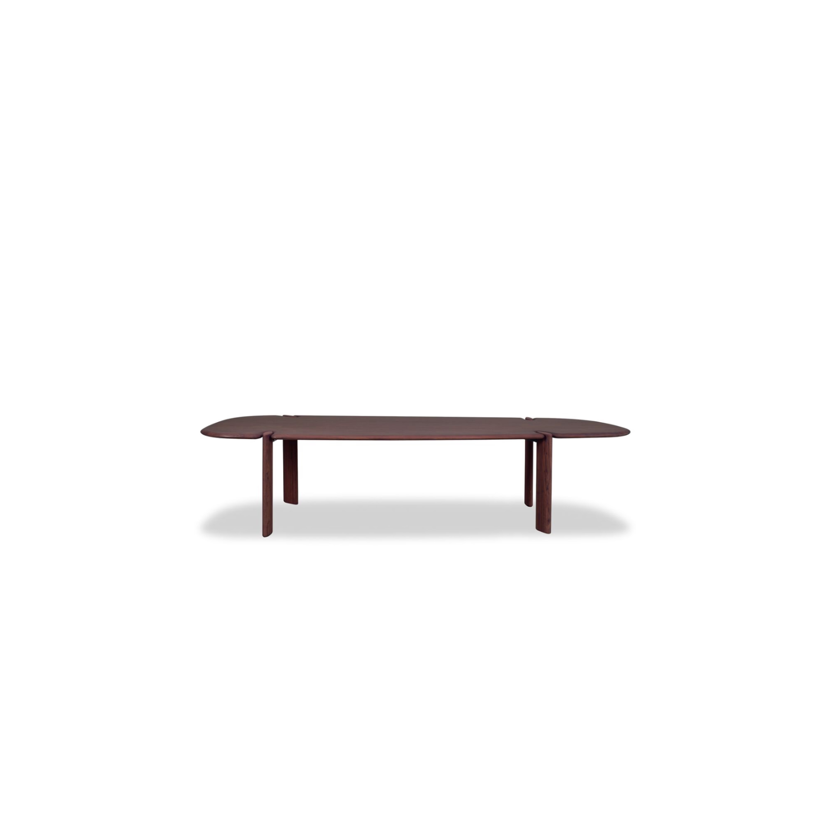 Il tavolo Isamu, progettato da Roberto Lazzeroni per Baxter, si distingue per il suo design scultoreo e l'uso di legno naturale, che esprime una bellezza autentica attraverso le sue variegate sfumature e texture. Il piano, con angoli delicatamente smussati, dà l'impressione di levitare sopra le robuste gambe, le quali si integrano armoniosamente nel piano tramite scanalature studiate, creando un effetto di continuità e organicità. Ogni elemento del tavolo, realizzato in frassino sabbiato o Granadillo Messicano, è lavorato con cura per preservare e valorizzare la sensazione tattile e visiva del legno, rendendo ogni pezzo unico nel suo genere.