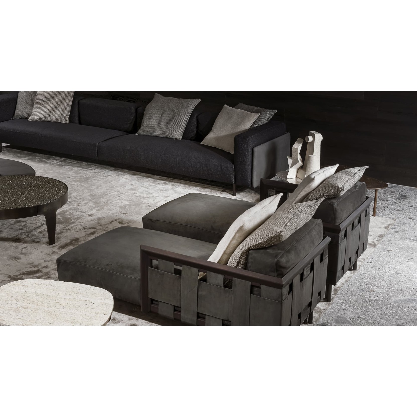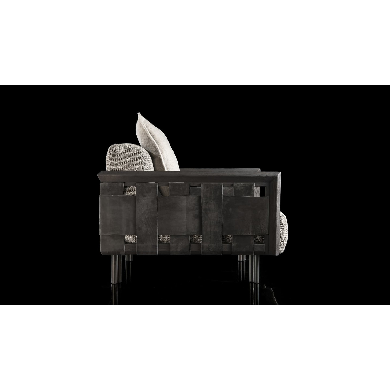 Realizzato con una solida struttura in legno norvegese, RF combina materiali pregiati e una lavorazione meticolosa. L’intreccio in pelle della struttura esalta la qualità artigianale del pezzo, conferendogli carattere e un’eleganza senza tempo. Il cuscino di seduta è composto da Ecolypha 40, uno strato di poliuretano T50 e VE40S, il tutto avvolto in un morbido piumino d’anatra bianca Gold Label 280 con rivestimento anti-duvet in cotone 100% da 210 gr. Anche i cuscini di schienale e braccioli sono imbottiti con PF25SM e ricoperti dello stesso piumino pregiato.