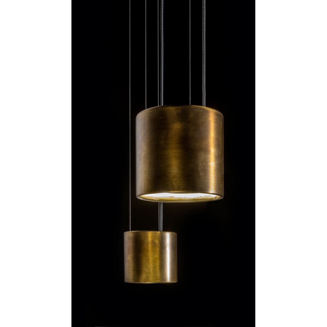 Questa lampada a sospensione presenta cilindri metallici di varie dimensioni, pensati per creare un vivace e espressivo gioco di luce e forma. I cilindri, sostenuti da cavi metallici, sono disponibili in diverse finiture, permettendo una configurazione completamente personalizzabile. La luce è a basso consumo energetico, emettendo luce calda (indice di efficienza energetica A) ed è alimentata tramite un sistema a bassa tensione che si connette attraverso i cavi di sospensione. L'altezza standard è di 180 cm, ma su richiesta è possibile utilizzare sistemi di montaggio alternativi o un trasformatore remoto. È disponibile luce extra calda (2700K o 4000K) senza costi aggiuntivi e la luce è compatibile con 110V e funzioni di regolazione dell'intensità. Realizzata artigianalmente con grande cura, ogni pezzo ha la propria individualità, celebrando le sottili variazioni nelle finiture metalliche o in marmo. Questa lampada è destinata esclusivamente all'uso interno, ideale per valorizzare interni moderni e sofisticati.