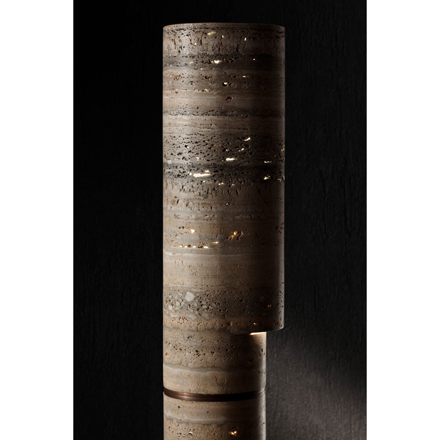 La lampada della serie Test è un capolavoro scultoreo realizzato in pietra, disponibile in Ice Onyx o Rapolano Travertino. Il corpo della lampada è composto da due pezzi di pietra uniti da un anello metallico, disponibile in ottone brunito o titanio brunito, che funge anche da interruttore e dimmer tattile. Il trasformatore è incorporato in una scatola metallica che si abbina al colore dell'anello, mentre una base metallica con tre bracci garantisce stabilità. Un cappuccio metallico che contiene la presa si abbina al colore dell'anello per un aspetto armonioso e integrato. La lampada offre luce extra calda a 2700K senza costi aggiuntivi e disponibile nelle configurazioni 240V, 220V o 110V su richiesta. Realizzata artigianalmente con una cura meticolosa, ogni lampada è unica, con variazioni naturali nelle finiture della pietra e del metallo. Questo prodotto è destinato esclusivamente per uso interno, aggiungendo un tocco artistico agli interni moderni.
