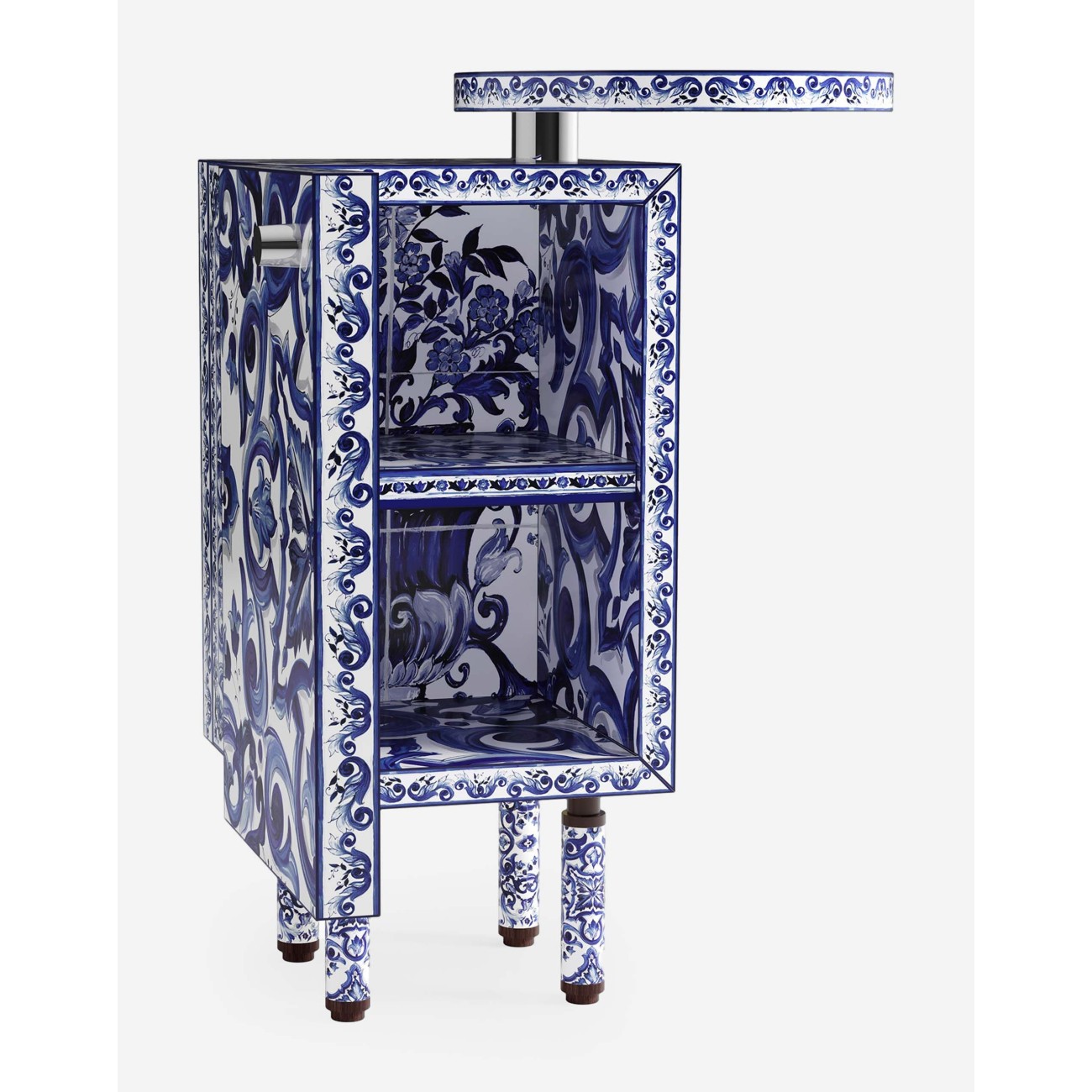Insolito nel suo aspetto, il tavolino Trivia di Dolce&Gabbana è un pezzo d’arredo che porta un carattere distintivo in ogni spazio. La struttura in legno, decorata con la raffinata grafica di collezione, si completa con un piano tondo girevole, anch'esso decorato e coordinato con la base. Questo tavolino si distingue per la sua progettazione tecnica, che sfida le tradizionali logiche produttive, e si riflette nei dettagli di alta artigianalità: dalla modellazione manuale degli spigoli e dei bordi, al bilanciamento visivo dei volumi, fino alla lucidatura meticolosa studiata per preservare nel tempo l’appeal delle grafiche. I piedini e puntali in legno massello, con finitura Quercia lucida, donano ulteriore eleganza a questo elemento unico di design. Made in Italy.