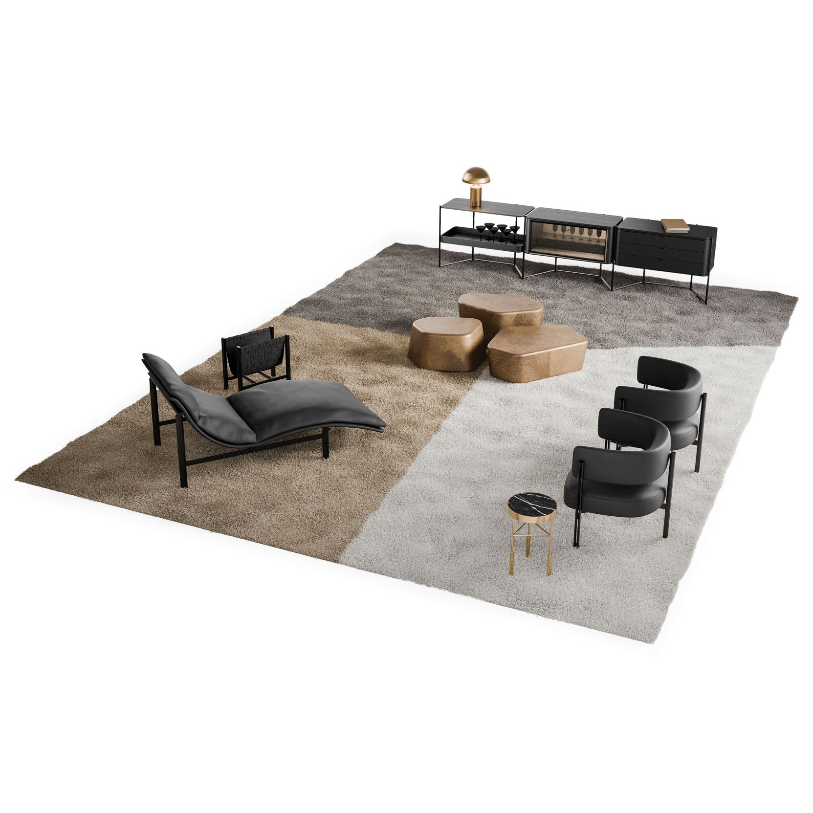 Il tappeto Penelope è caratterizzato da un gioco cromatico che richiama i toni caldi del legno e della terra, creando un'atmosfera accogliente e sofisticata.