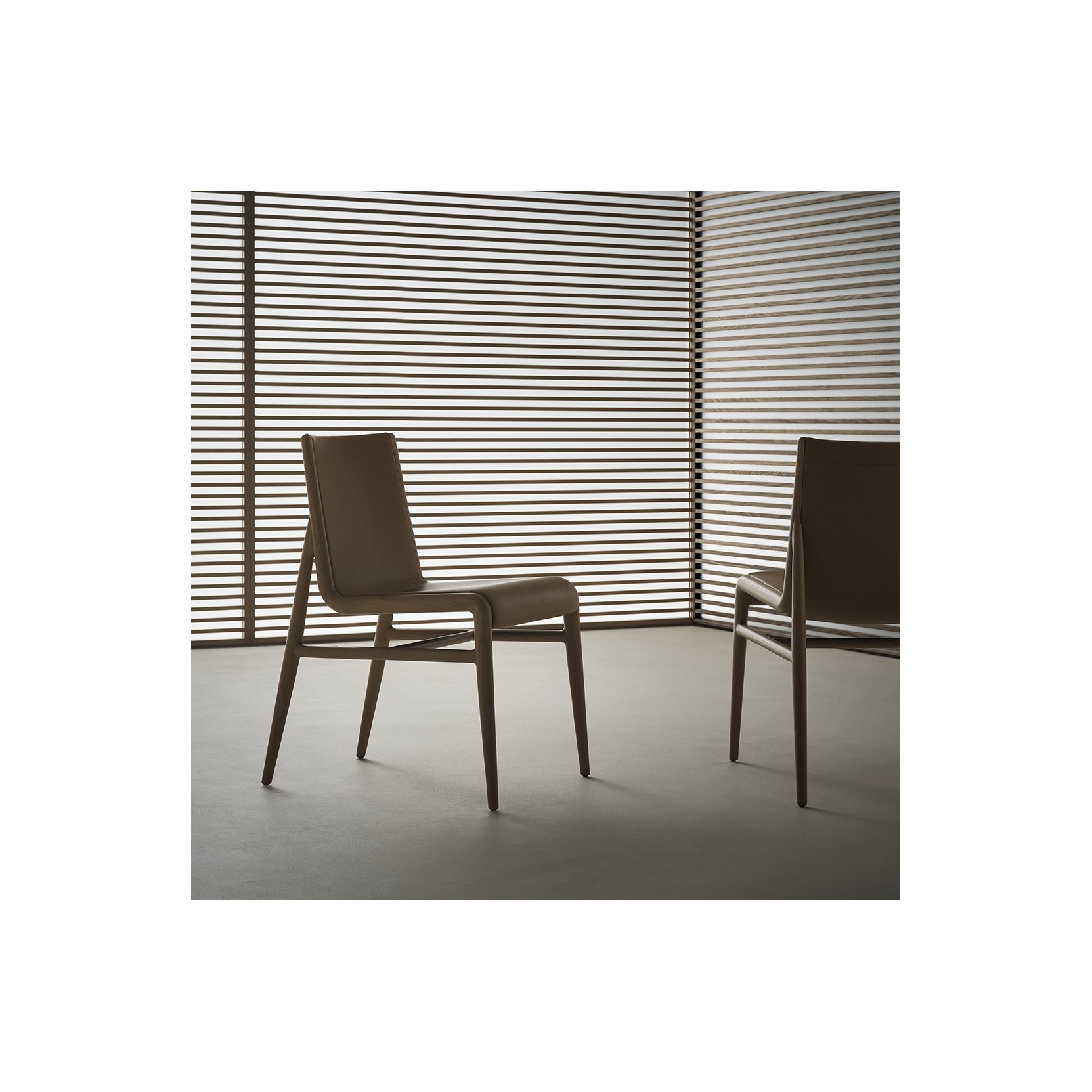 Sinua è una sedia dallo stile contemporaneo, caratterizzata da una struttura in legno a vista che si sviluppa lungo tutta l’altezza e accoglie la scocca centrale, fungendo anche da elemento di raccordo per i sostegni posteriori.