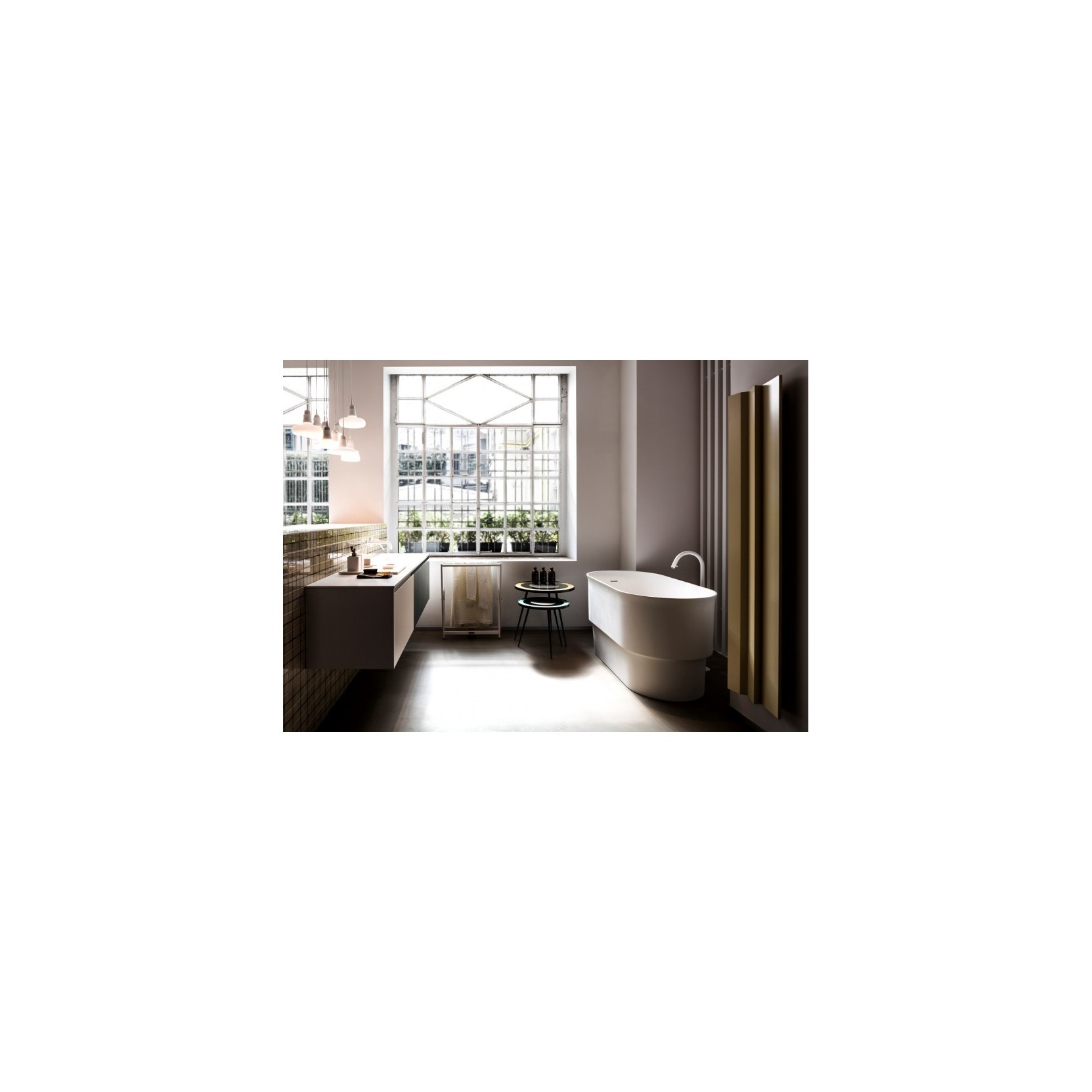 Immersion, progettata da Neri&Hu per Agape, reinterpreta vasche in legno orientale con invaso più profondo in Cristalplant® biobased – caldo e riciclabile – nelle varianti monocolore bianco o bicolore grigio chiaro/scuro, dimensioni 142,7 cm lunghezza, 70,7 cm larghezza, 72,5 cm altezza e capacità 305 litri, completa di piletta sifonata con calotta in Cristalplant e piattaforma seduta a doghe iroko inserita lungo il lato breve. Offre due esperienze: immersione totale corpo sdraiato o seduta termale, con piedi sotto piattaforma, pareti alte per vapore e parte inferiore incassabile per accesso facilitato.