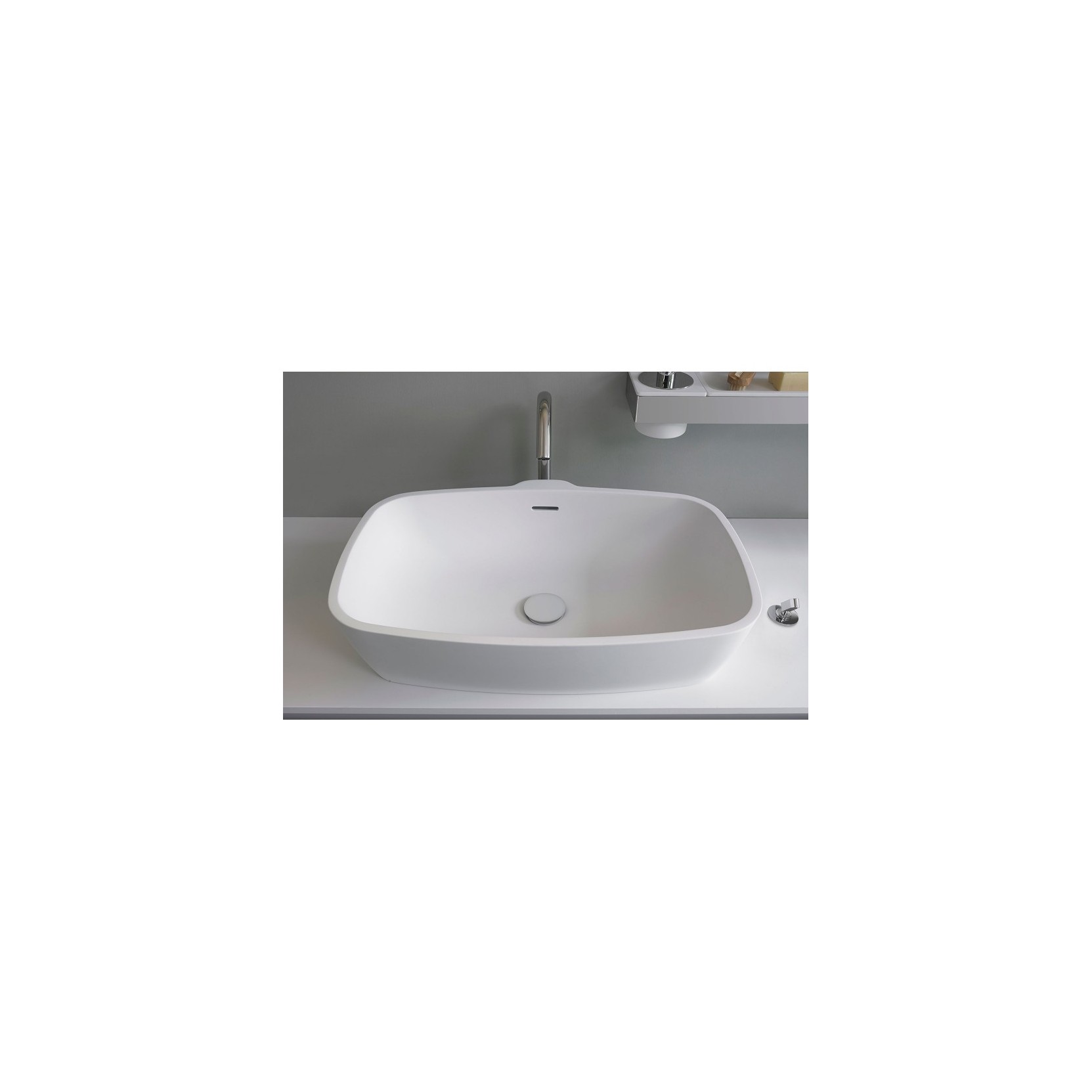 Normal presenta bacino ampio e invitante circondato da bordo sottile in Cristalplant® biobased bianco monocolore o bicolore grigio chiaro/scuro, dimensioni 64,5 cm larghezza, 42,5 cm profondità, 15 cm altezza (peso 13 kg), completo di piletta .MET0563 per scarico libero senza foro rubinetto né troppopieno. Forma pura e semplice si presta a infinite composizioni su piani dei programmi Flat XL, Evoluzione e Lato, installazione da appoggio per rubinetteria a muro o piano, raffinata semplicità naturale per bagni tradizionali o eclettici.