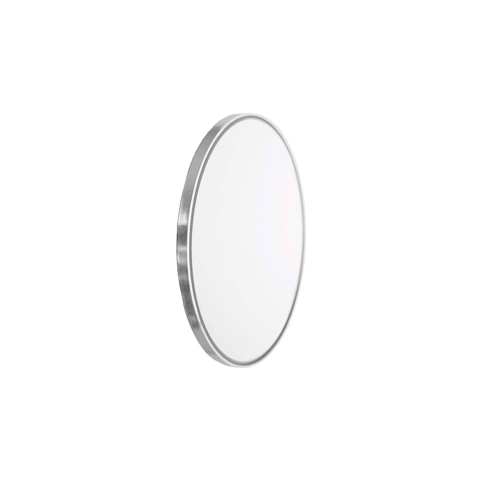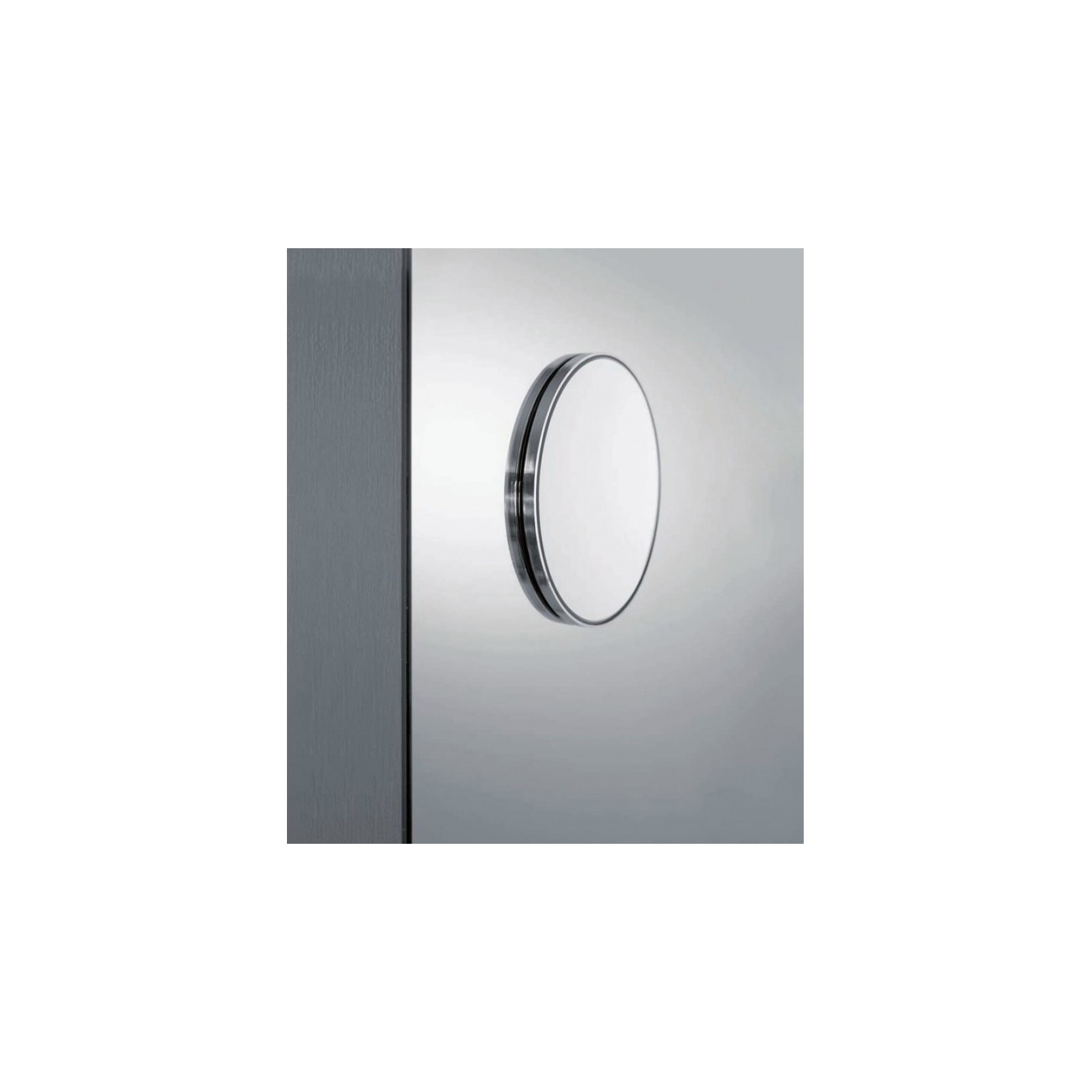 Spai è un piccolo disco a specchio, realizzato con una cornice in materiale plastico cromato che ne racchiude l’involucro tondo, con ingrandimento di circa 2x rispetto alla visione normale. Il retro dello specchio è dotato di superficie adesiva autoadesiva, che permette di fissarlo direttamente su vetro, pareti lisce, cartongesso verniciato o superfici continue, senza necessità di fori o tasselli, ad esempio sopra un grande specchio, accanto al lavabo o in zona trucco. Il diametro indicativo è di circa 17,5 cm, dimensione contenuta che ne fa un elemento quasi “grafico” all’interno della parete specchio, ma estremamente pratico per dettagli di precisione (barba, mascara, occhiali, ecc.). La versione descritta è senza luce integrata, concepita per lavorare con illuminazione naturale o con luci a parete, e mantiene un profilo estremamente pulito, che si integra bene in bagni minimali, camerini o zone di make‑up dove il focus è sulla luce e sullo spazio, più che sullo specchio stesso.