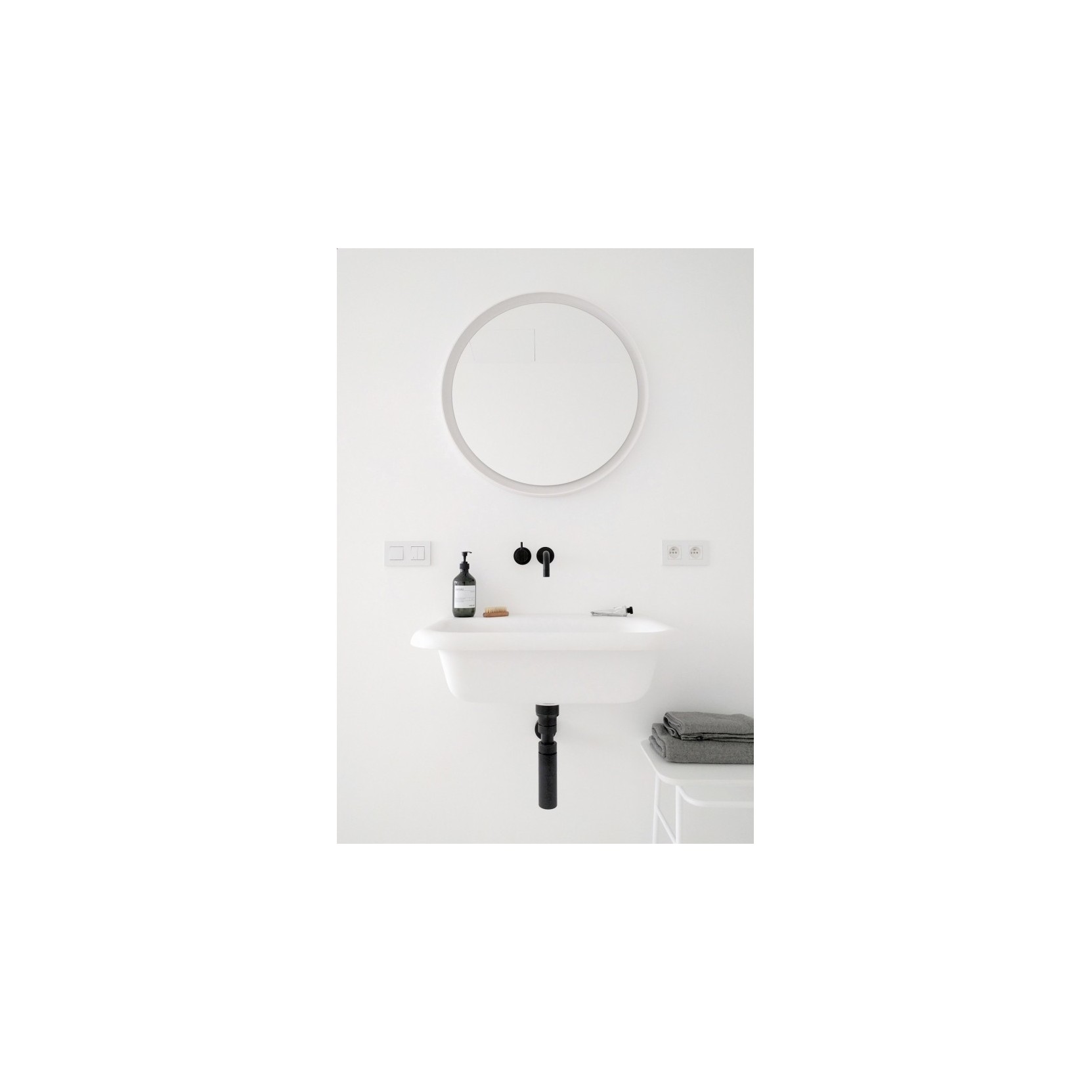 Memory può essere realizzato in forma circolare o rettangolare con angoli arrotondati, sempre accompagnato da una cornice laccata in bianco o nero che definisce il perimetro dello specchio senza appesantirlo visivamente. È disponibile sia nella versione senza luce sia con illuminazione LED posizionata dietro il vetro riflettente, per una luce soffusa e uniforme che riduce i contrasti con l’ambiente circostante. Lo specchio è fissato a parete tramite viti e tasselli ad espansione, con alimentazione tipica 38 W – 220 V e certificazione CE, adatto sia a installazioni orizzontali sia verticali. La cornice laccata può essere ordinata in entrambe le finiture (bianca/negra) e consente di integrare Memory con altri elementi della collezione Memory (come mensole e accessori). L’assenza di parte traslucida sul vetro consente di vedere la superficie riflettente anche quando la sorgente interna è spenta, mentre la luce LED è progettata per diffondersi in modo morbido sullo specchio, creando una cornice luminosa attorno al viso senza abbagliare.