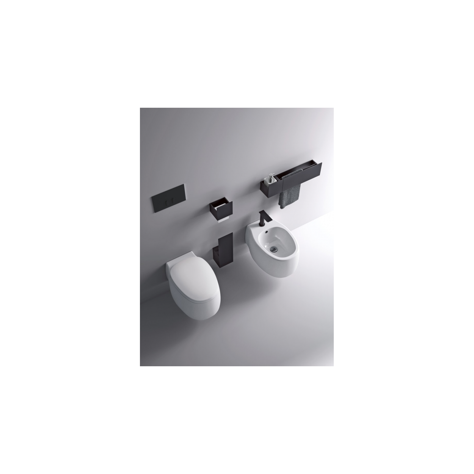 Il bidet Pear 2 è realizzato in ceramica di alta qualità, disponibile in finitura bianca lucida o opaca, bicolore con esterno in grigio scuro RAL7021 oppure in versione colorata interna ed esterna (verde o grigio scuro). La forma è rimless, senza brida, con profilo morbido e simmetrico che favorisce una pulizia rapida e una linea pulita nel bagno. È dotato di un foro per rubinetteria basso a parete e di un foro per troppo pieno completo di ghiera in acciaio inossidabile lucido, mentre il sifone e il tubo di scarico sono da scegliere a parte (es. MET0346P o MET0562). Le dimensioni indicativa sono circa 52,5 cm di profondità, 38 cm di larghezza e 25,5 cm di altezza, con fissaggio a parete mediante kit di montaggio incluso. L’installazione richiede un sostegno metallico da incasso compatibile (ad esempio AMET0315) per garantire stabilità e sicurezza. Perfetto da abbinare al WC sospeso Pear 2, il bidet si adatta a bagni moderni residenziali e contract, con superfici lisce e giunti minimi che esaltano l’ordine visivo della stanza.