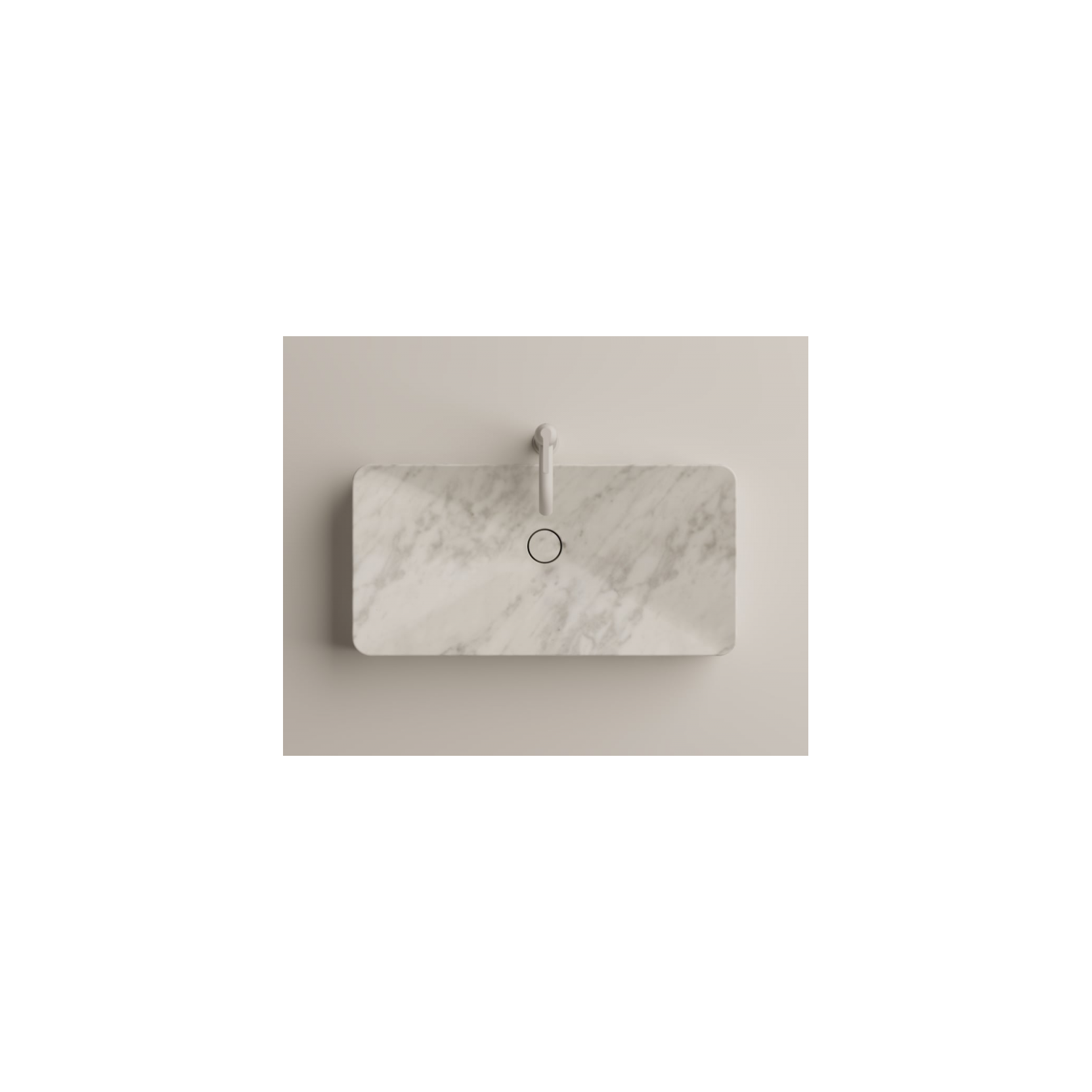 Il lavabo Raso è un bacino rettangolare incastrato nel piano, realizzato in solid surface bianco, marmo (Carrara, Carnico, Marquina, Verde Alpi, Emperador dark) o Petit Granit, con profilo basso e linee rettilinee che si confondono con la superficie circostante. È privo di foro per rubinetto e di troppo pieno, progettato per essere abbinato a rubinetti a parete o a canna posizionati esternamente. Il lavabo si integra in piani in solid surface, marmo, legno o composito, con quote di taglio e montaggio studiate per un’installazione precisa e ordinata, anche in configurazioni doppie o multiple. La superficie liscia e compatta facilita la pulizia e il mantenimento, rendendo Raso adatto a bagni residenziali, strutture contract e spazi di servizio in cui l’essenzialità è il tratto distintivo.