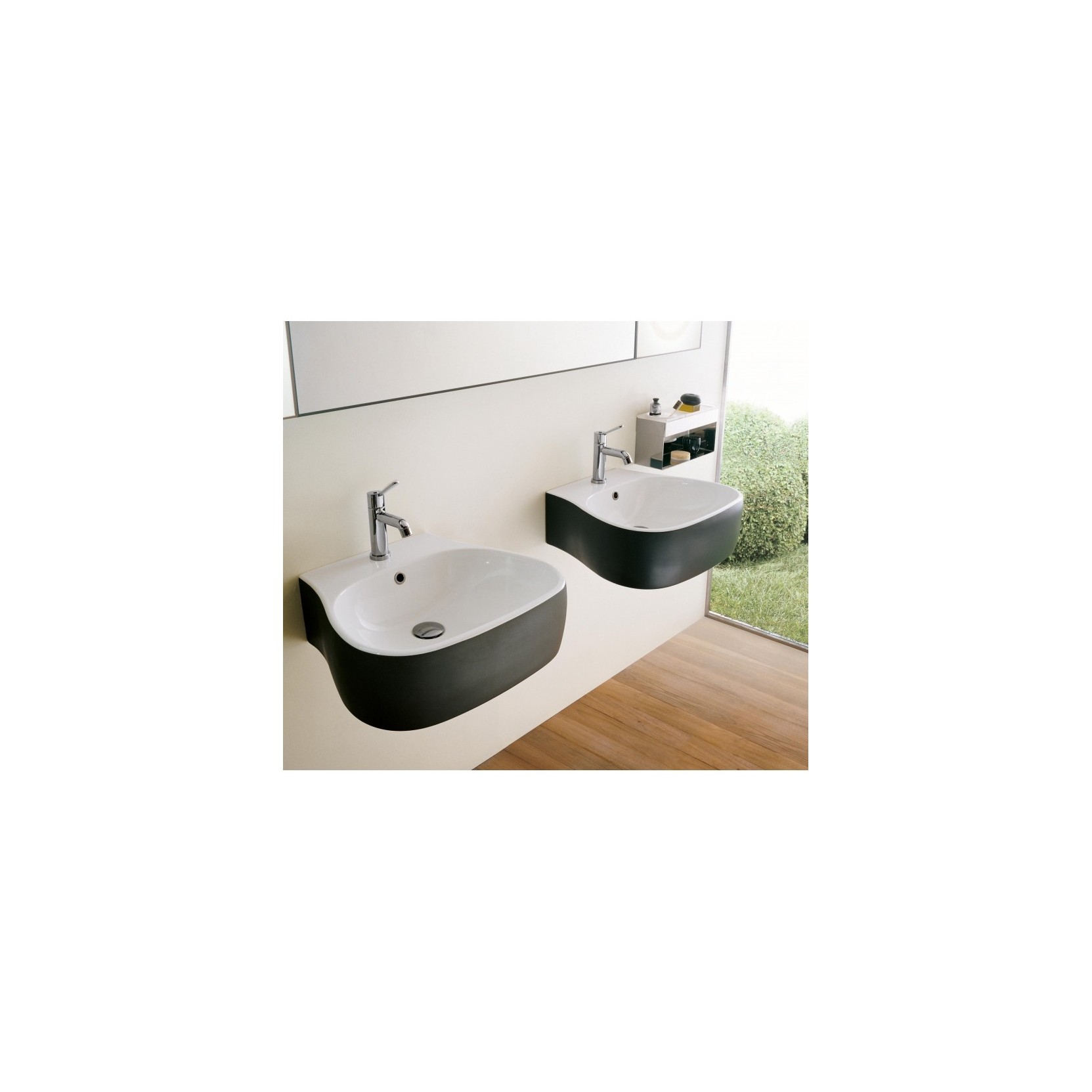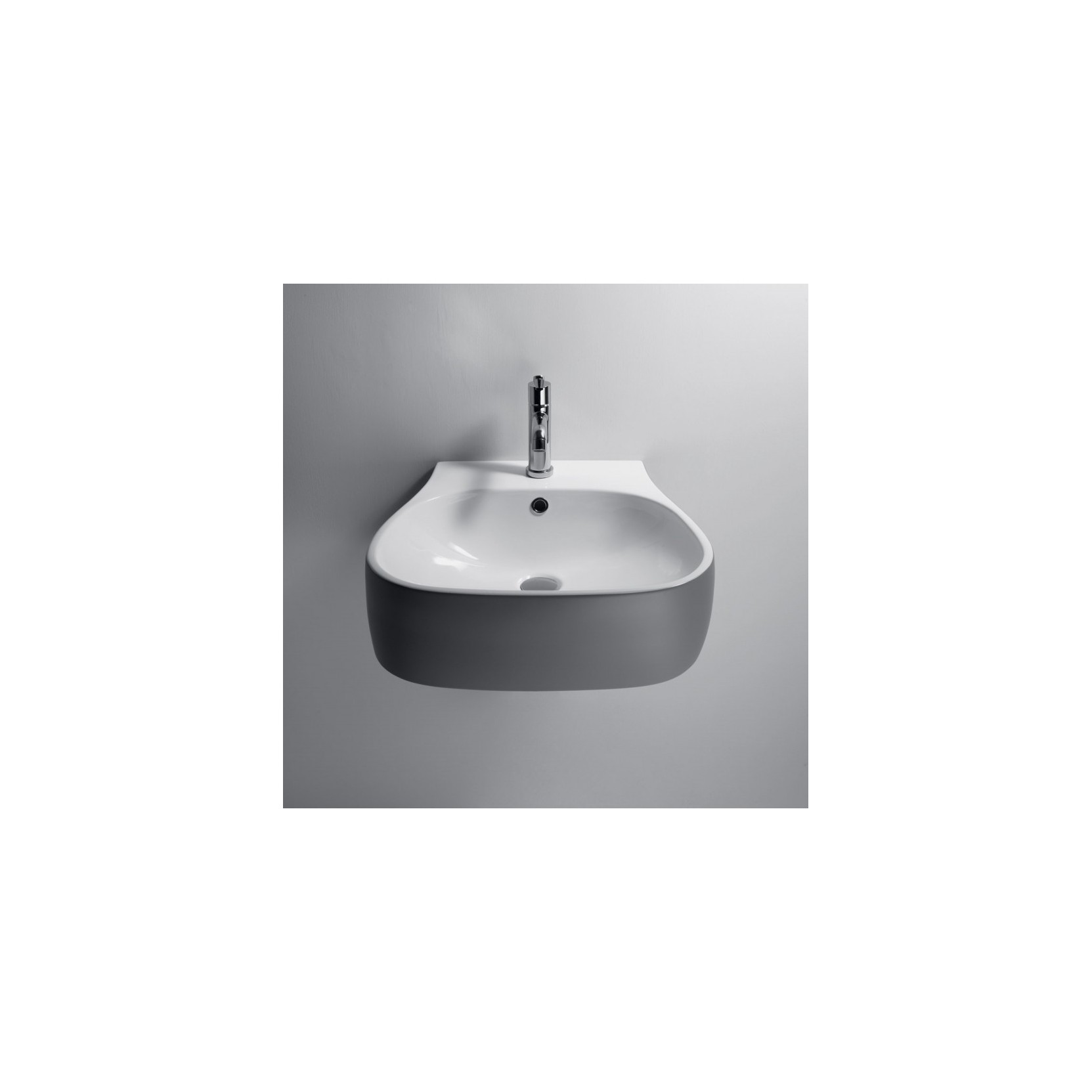 Il lavabo Pear è realizzato in ceramica, con finitura bianca lucida, bianca opaca oppure bicolore (bianco interno e grigio scuro esterno RAL7021), che rafforza l’effetto tridimensionale del corpo. È disponibile con configurazione a parete, con foro per il rubinetto singolo, triplo o nessun foro, completato sempre da un foro per il troppo pieno in bullone in acciaio inox. Il lavabo si adatta a scarico a parete o a appoggio su top in marmo, legno o composito, con possibilità di montarlo anche in soluzioni a colonna a seconda della configurazione scelta. La superficie liscia e la forma arrotondata facilitano la pulizia e il mantenimento, mentre il design coerente con la collezione Pear consente di creare ambienti bagno unitari e di carattere.