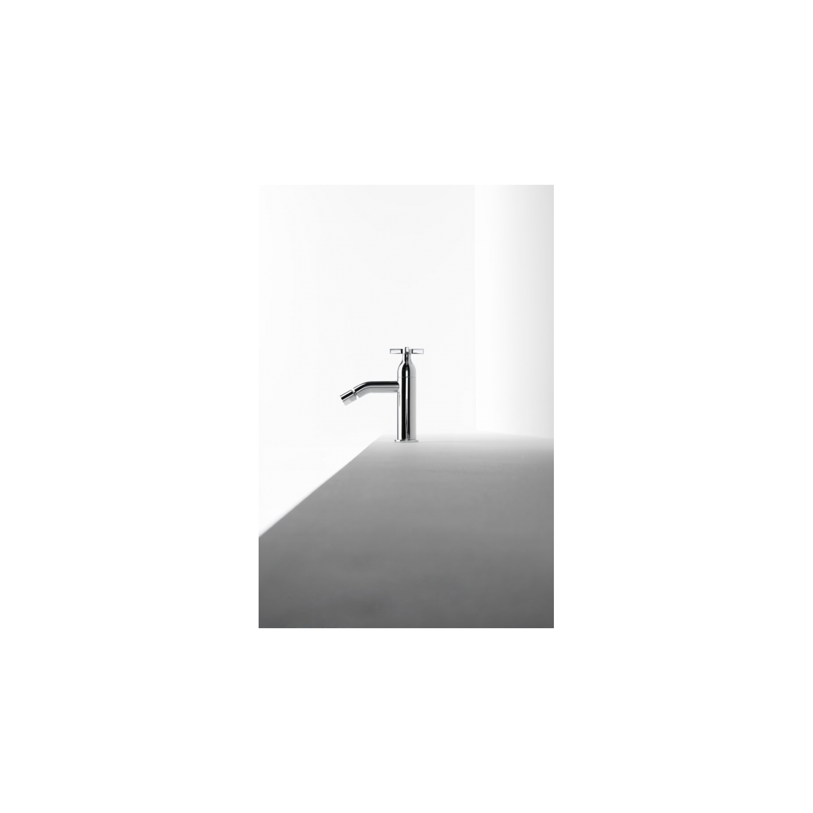 Il miscelatore Memory per lavabo è un rubinetto monoforo monocomando in ottone, con flessibili di alimentazione inclusi, pensato per funzionamento progressivo di temperatura e portata attraverso un’unica leva a croce. Disponibile in finiture cromo, brunito spazzolato, ottone naturale spazzolato e nero opaco RAL9005, con ulteriori finiture a richiesta per lotti minimi, il corpo è compatto e studiato per un’installazione razionale su foro singolo standard. La maniglia richiama la storica croce delle maniglie dei rubinetti del passato, mentre gli areatori interni permettono un flusso uniforme e riducono gli schizzi, con valvole a dischi ceramici per una regolazione precisa e una lunga vita utile. Memory appartiene a una famiglia che comprende versioni per lavabo, bidet, vasca e doccia, consentendo un linguaggio coerente in tutta la zona bagno, dove il richiamo storico si sposa con un’estetica rigorosa e di alto livello.