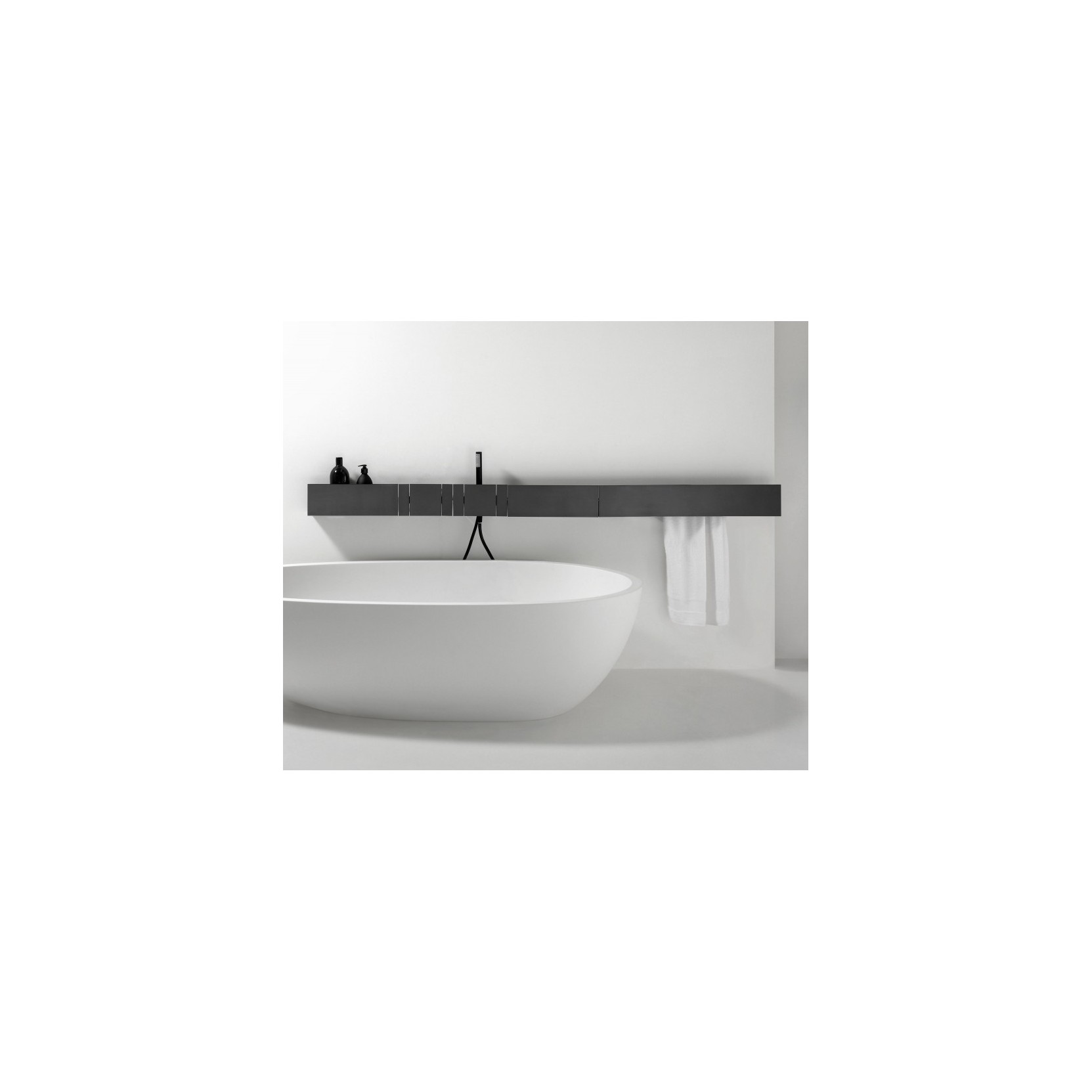 Il rubinetto Sen per vasca è un miscelatore monoforo a parete in alluminio anodizzato, con erogazione verticale verso il bacino, disponibile con finitura nera spazzolata e possibilità di variazioni cromatiche naturali dovute al processo di anodizzazione. Le dimensioni tipiche si aggirano sui 24 cm di larghezza, 12 cm di profondità e 14 cm di altezza, con attacchi standard per impianti a parete in acciaio inox o plastica, studiati per un’installazione precisa e ordinata. Il sistema è monocomando e progressivo, con una sola leva che regola temperatura e portata in modo continuo, grazie a una cartuccia a dischi ceramici progettata per una lunga durata e una risposta precisa. La famiglia Sen comprende anche versioni per lavabo, bidet, doccia e vasca a pavimento, permettendo di coordinare tutta la rubinetteria in un unico linguaggio estetico, con certificazioni UPC, DVGW e Watermark che garantiscono sicurezza e affidabilità.
