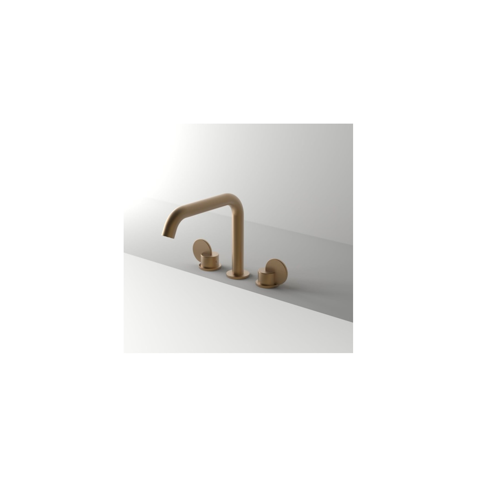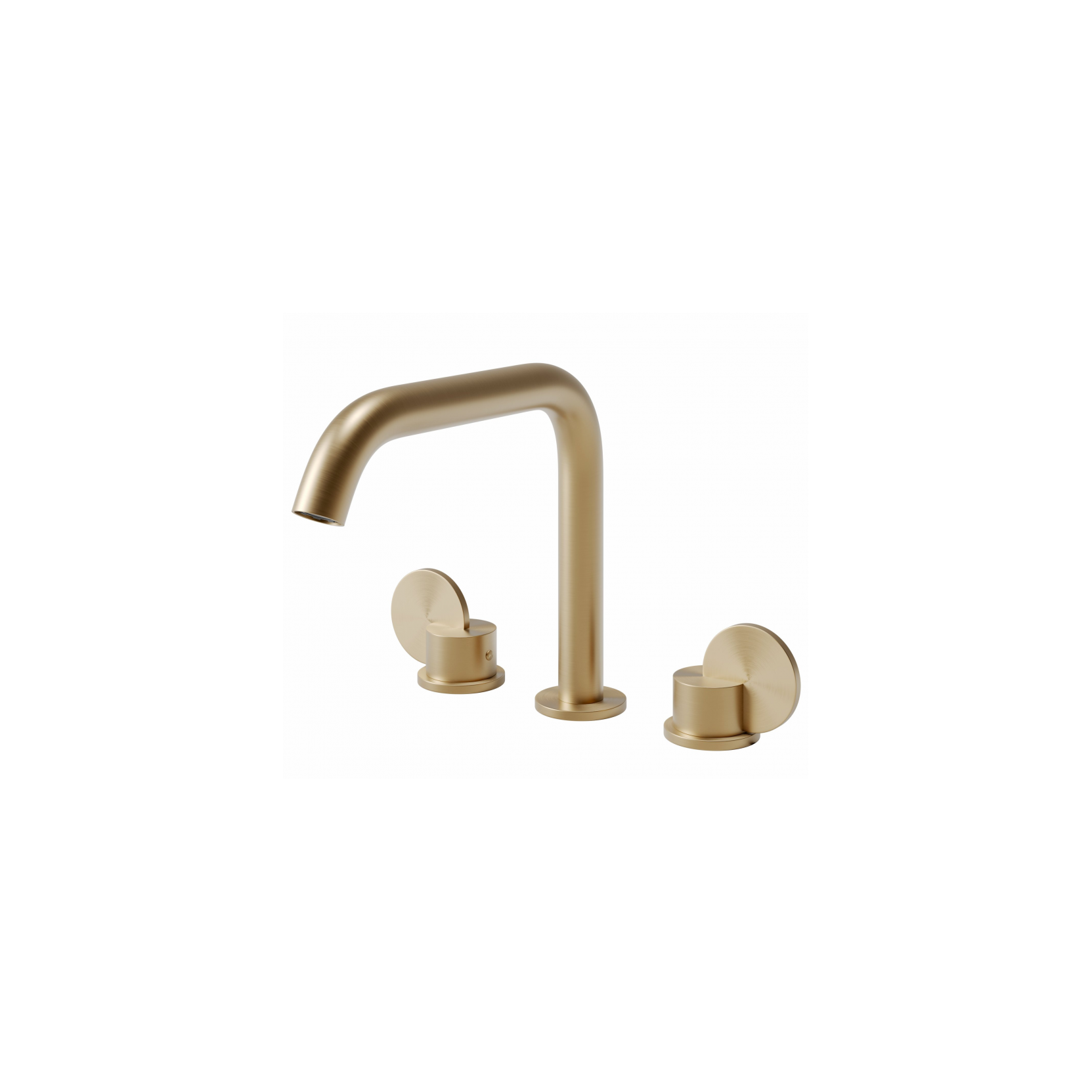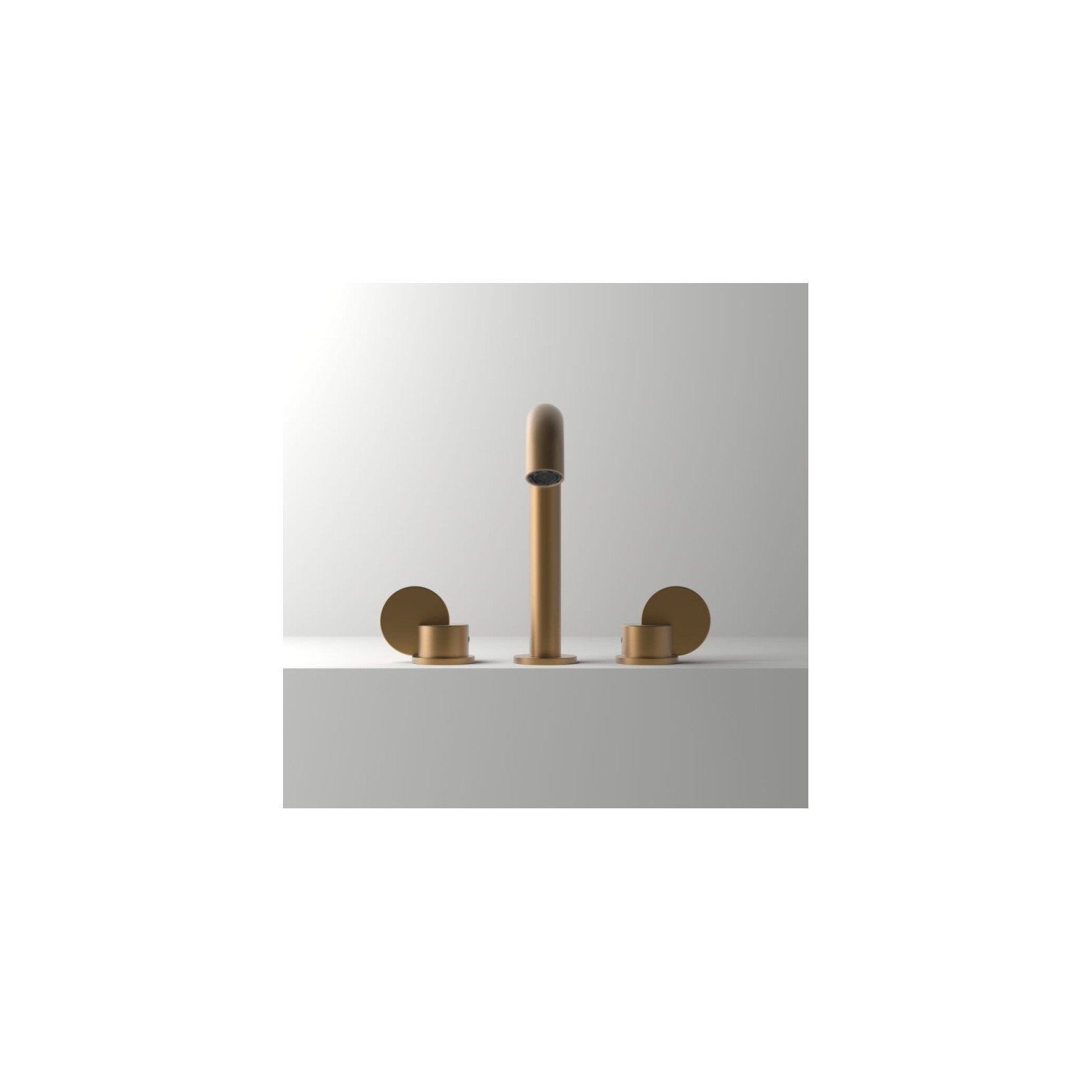 Il gruppo lavabo a tre fori Limón, disegnato da Patricia Urquiola per Agape, è un miscelatore da appoggio in ottone con doppio comando, pensato per coordinarsi con lavabi moderni e con gli altri rubinetti della famiglia. Conserva la stessa identità formale del monoforo Limón, con geometrie chiare e sezione circolare, ma adatta il sistema di attivazione tradizionale a tre fori.