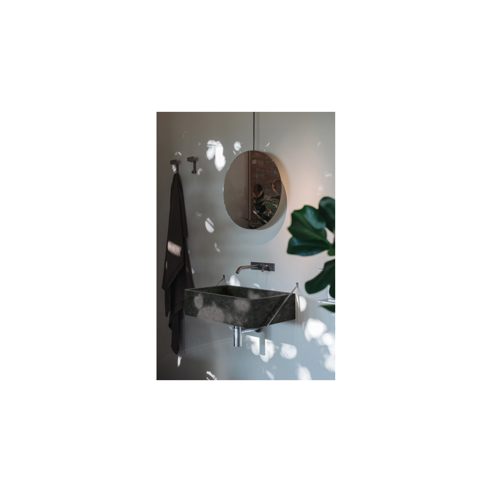 Bucatini è uno specchio circolare dal design iconico e minimale, disegnato da Fabio Bortolani ed Ermanno Righi per Agape. In gamma dal 1997, rappresenta un classico del design anticonvenzionale, caratterizzato dal bordo a filo lucido e da un sistema di fissaggio unico: lo specchio è infatti sorretto da un cavetto in acciaio rivestito in materiale plastico (disponibile in nero, bianco o trasparente) o in sughero, che diventa l’elemento distintivo del pezzo. Disponibile anche con retroilluminazione LED, Bucatini si integra in bagni di ogni stile, portando un tocco di essenzialità intelligente.