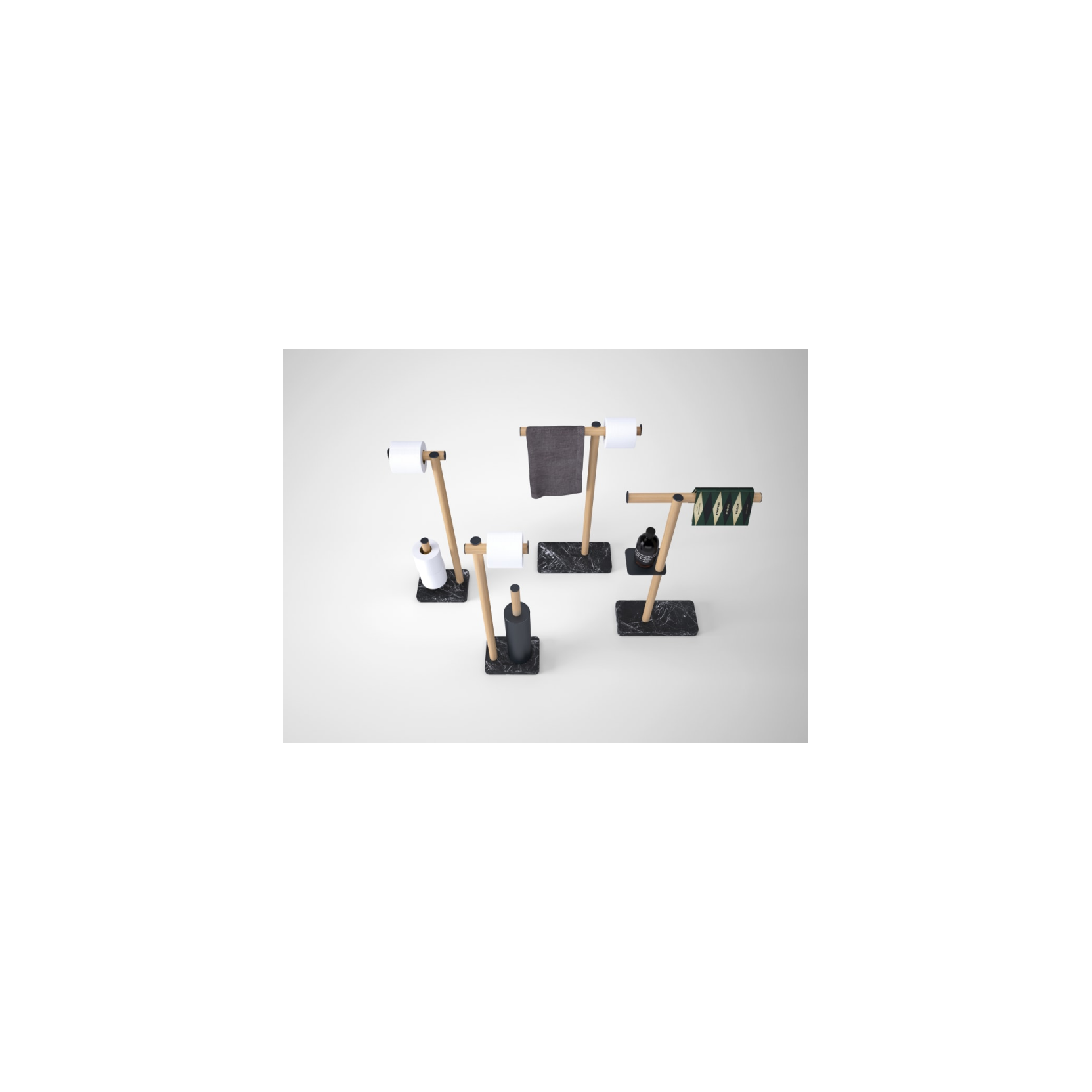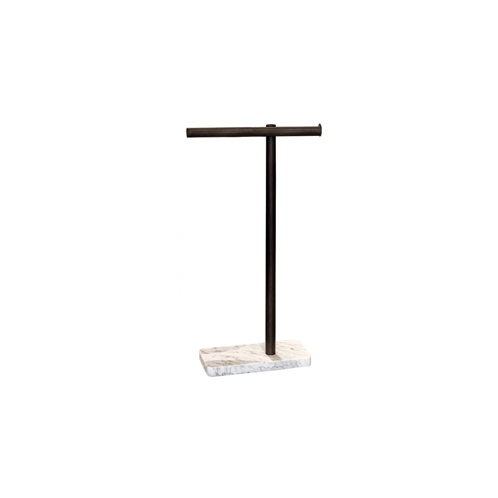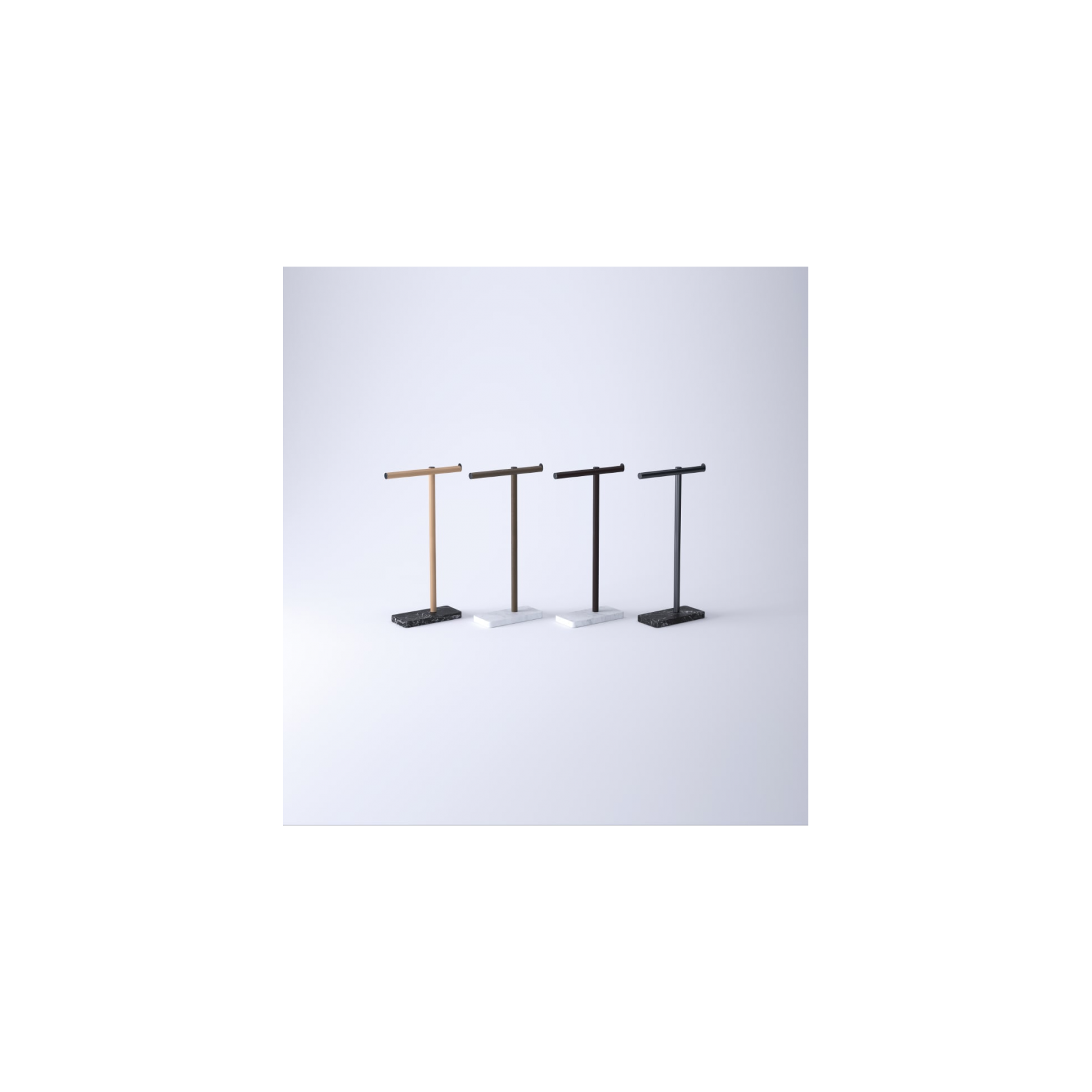 Dot Line è un porta salviette da terra firmato dallo studio Garcìa Cumini per Agape, nato da un’ispirazione neoplasticista che gioca sul ritmo grafico di linee e punti. La struttura è composta da un tubolare in alluminio (disponibile con finitura anodizzata nera o rivestito in rovere naturale, bruno o scuro) che si innesta su una base circolare in pregiato marmo, proposto in diverse varianti come bianco di Carrara, nero Marquina, verde Alpi o Emperador dark. Un accessorio scultoreo, grafico ed elegante, perfetto per bagni moderni e spazi contract che richiedono un tocco di design distintivo e funzionale.