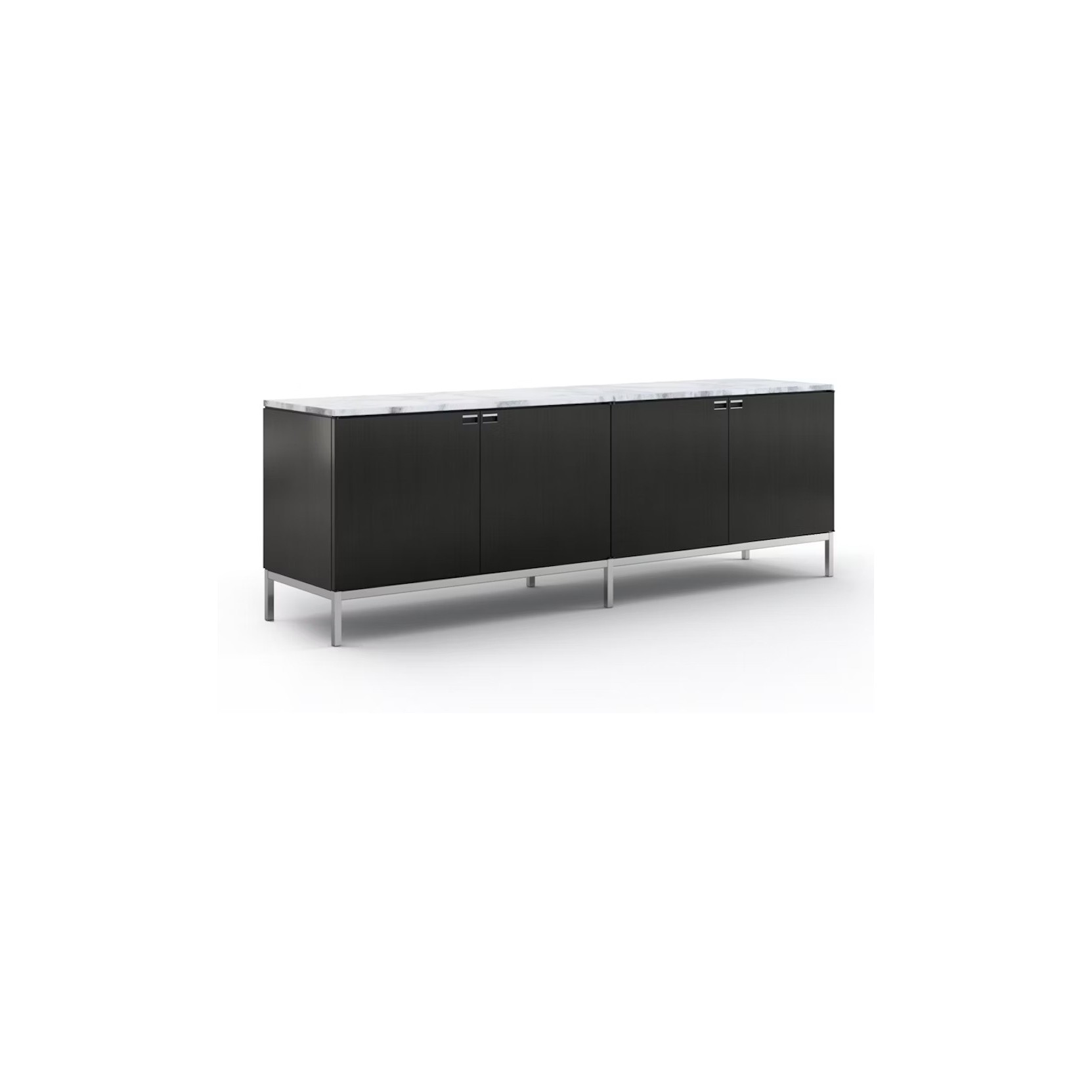 La credenza presenta lati, schienale, frontali di cassetti e ante in impiallacciatura, lavorati con grande precisione per garantire uniformità estetica e resistenza nel tempo. La base in cromo lucido aggiunge stabilità e leggerezza visiva, creando un contrasto armonioso con le superfici in legno. Il design lineare e minimalista consente di integrare la credenza in diversi contesti, mentre le proporzioni studiate offrono ampio spazio contenitivo senza compromettere l’eleganza complessiva dell’oggetto. Ogni elemento è assemblato con attenzione artigianale, assicurando durabilità e finiture impeccabili.