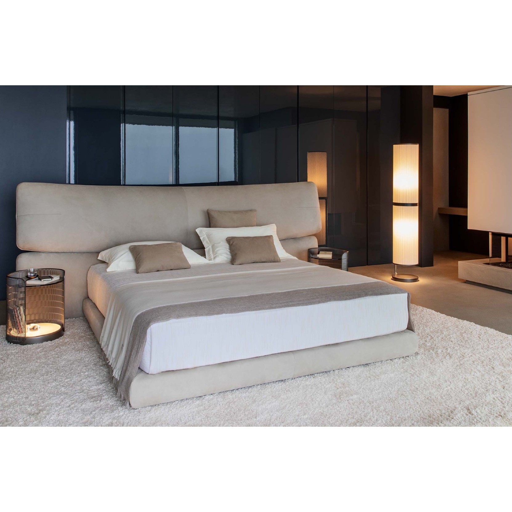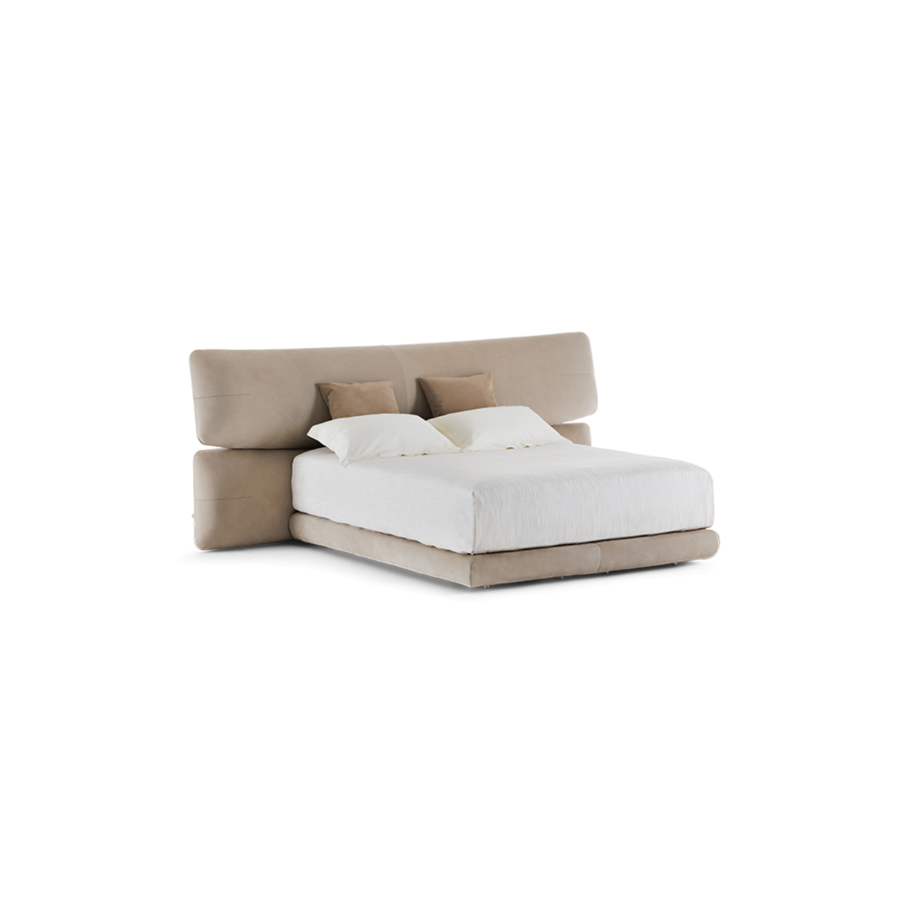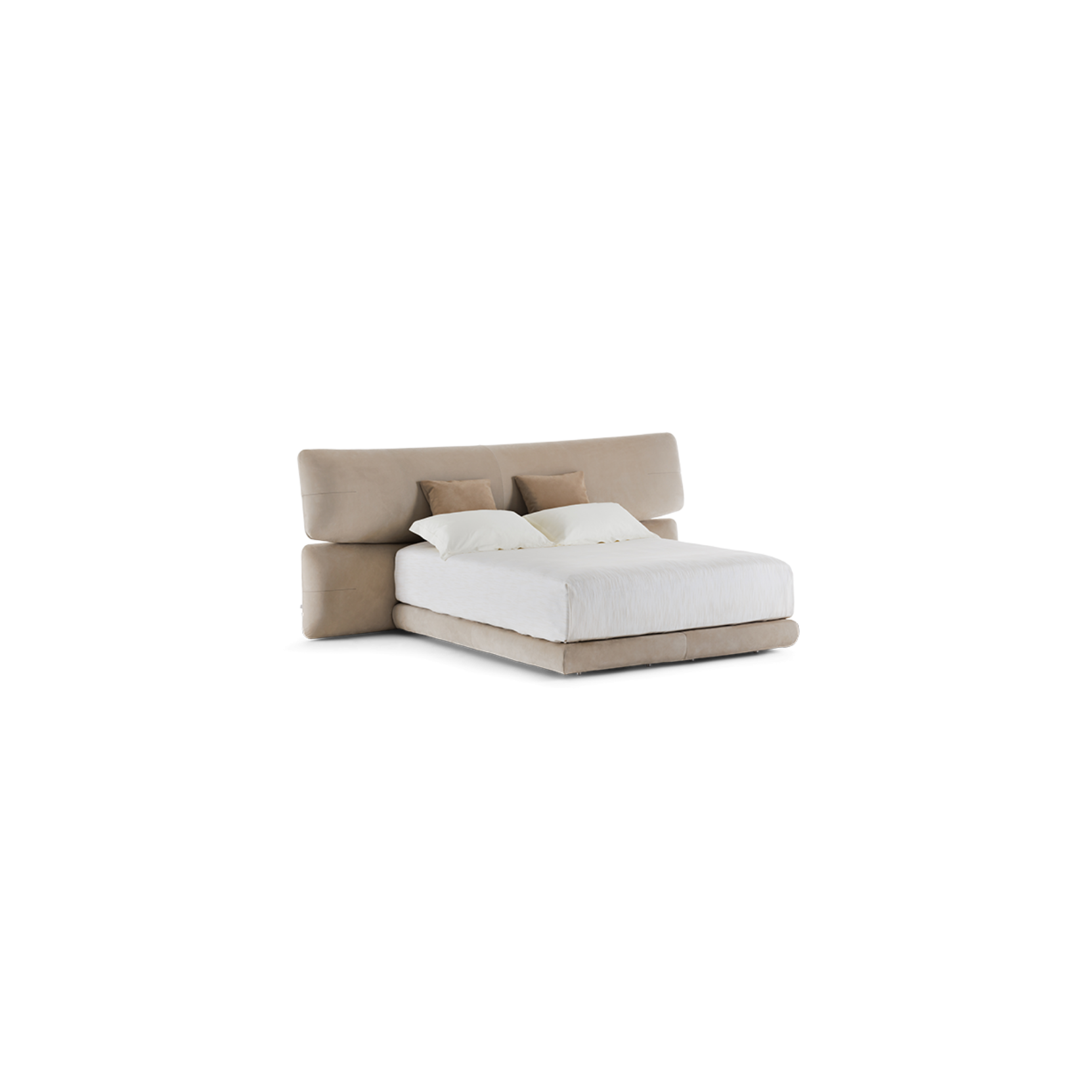 La testata, generosamente imbottita, è composta da due pannelli orizzontali sovrapposti che si estendono ai lati del sommier con curvature leggermente differenziate, dettaglio stilistico che alleggerisce l’insieme e valorizza la sensazione di comfort e accoglienza. La base e la parte anteriore della testata sono completamente sfoderabili e disponibili in tessuto o pelle, mentre il retro della testata non è sfoderabile ed è realizzabile solo in pelle o nel tessuto spalmato Greene. Yuna può essere completato con base Leonardo H16, base H25 con doghe regolabili, base contenitore o base Motion 4.