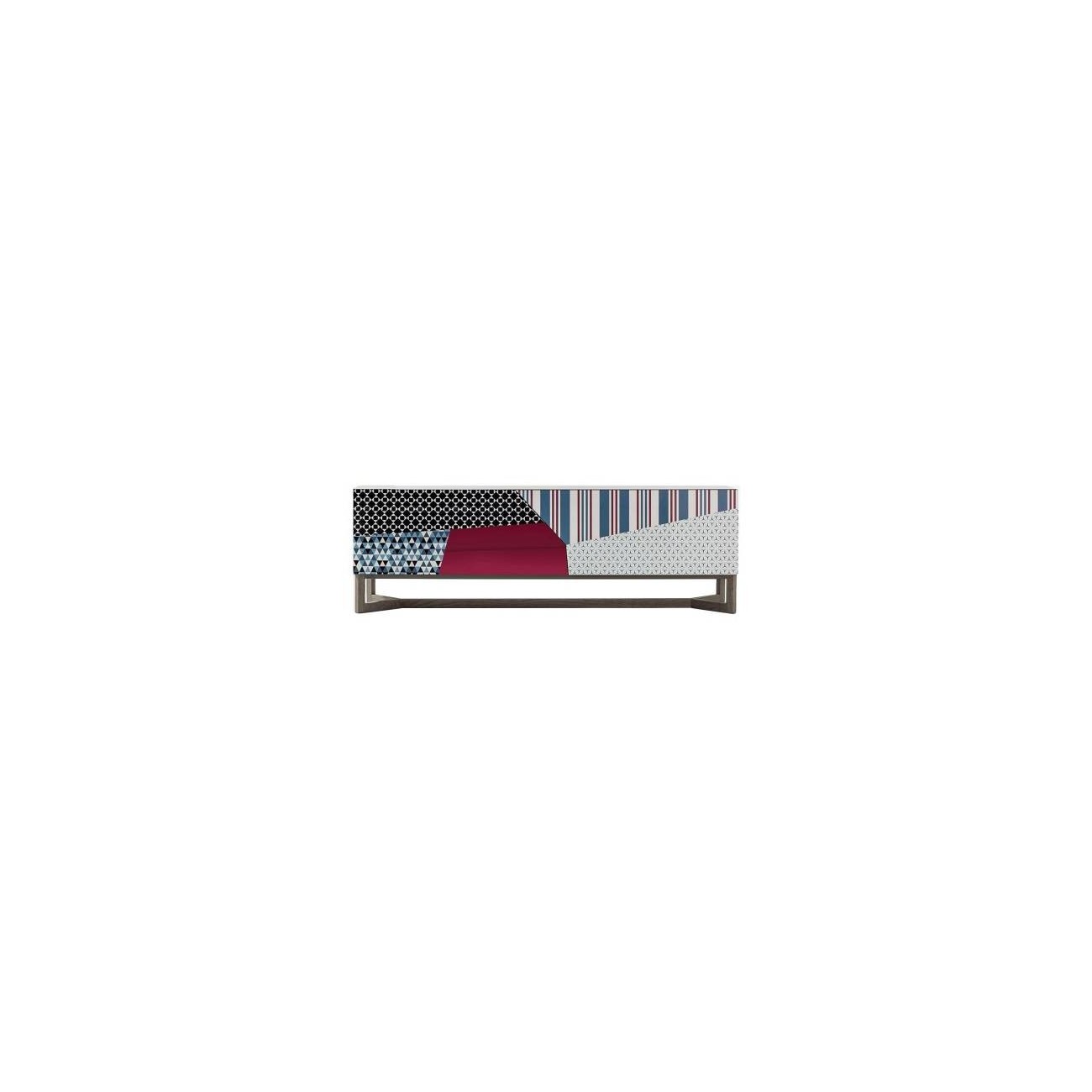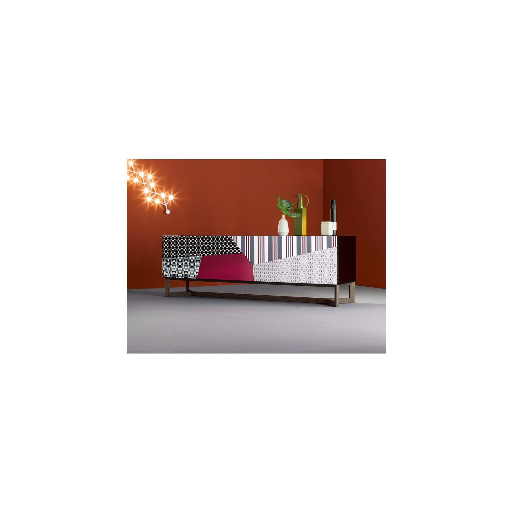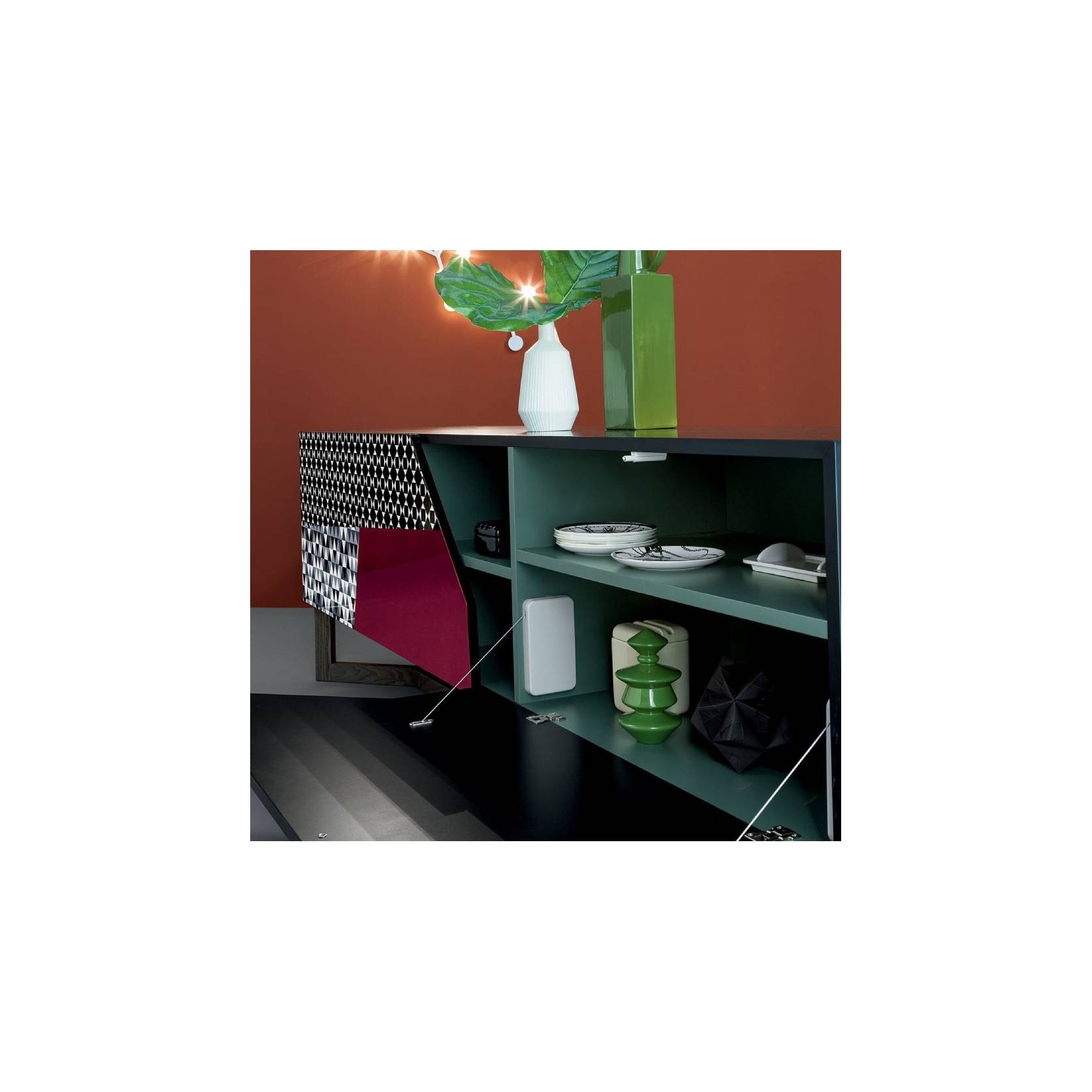 Doppler è una madia ideata da Giuseppe Viganò per Bonaldo, con la struttura in legno laccato è sostenuta da una base in legno massello di frassino.La caratteristica di Doppler è quella di creare un'illusione di piani sovrapposti, mentre in realtà le ante sono formate da un unico piano: è infatti la combinazione di diversi motivi grafici dai colori accesi a creare questo particolare effetto ottico. L’apertura asimmetrica delle ante rappresenta un ulteriore segno di originalità. Le madie Doppler sono disponibili in due dimensioni: una alta e una più bassa per arredare sia la zona living sia la zona notte. In questa versione: madia bassa, basamento frassino opaco nero. Portata massima: 15 kg per piano.