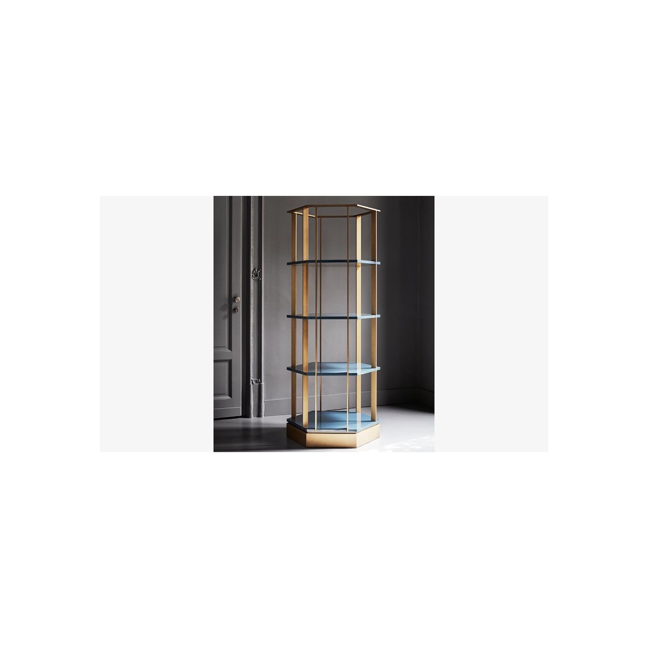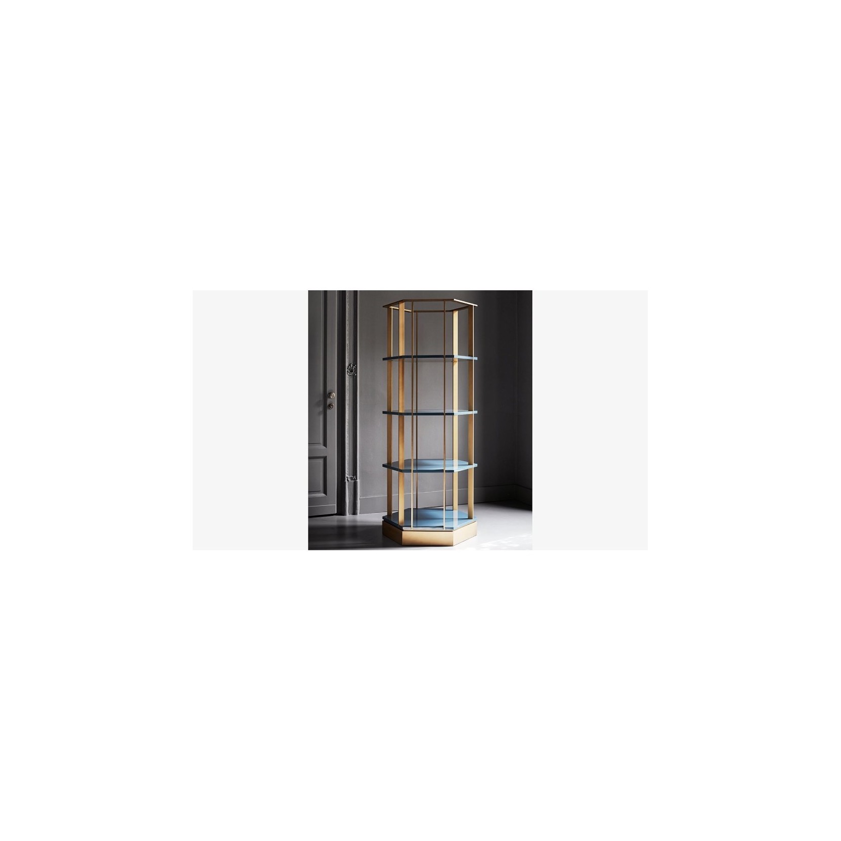 Meridiani Editions - Shine Libreria esagonale con struttura in metallo verniciato ottone bronzato o opaco black Finiture ripiani in lacca opaca o lucida.Spedizione 5-6 settimane lavorative