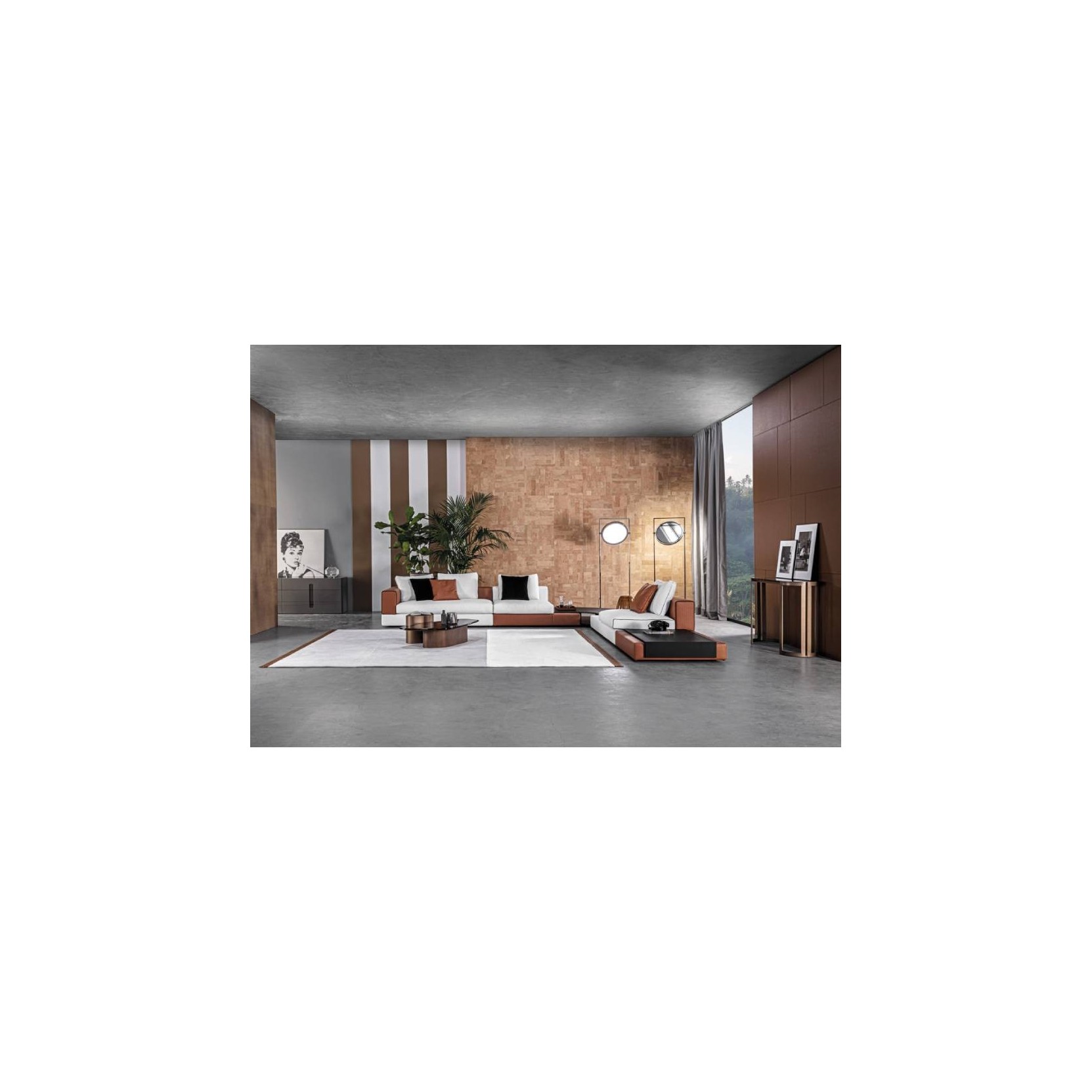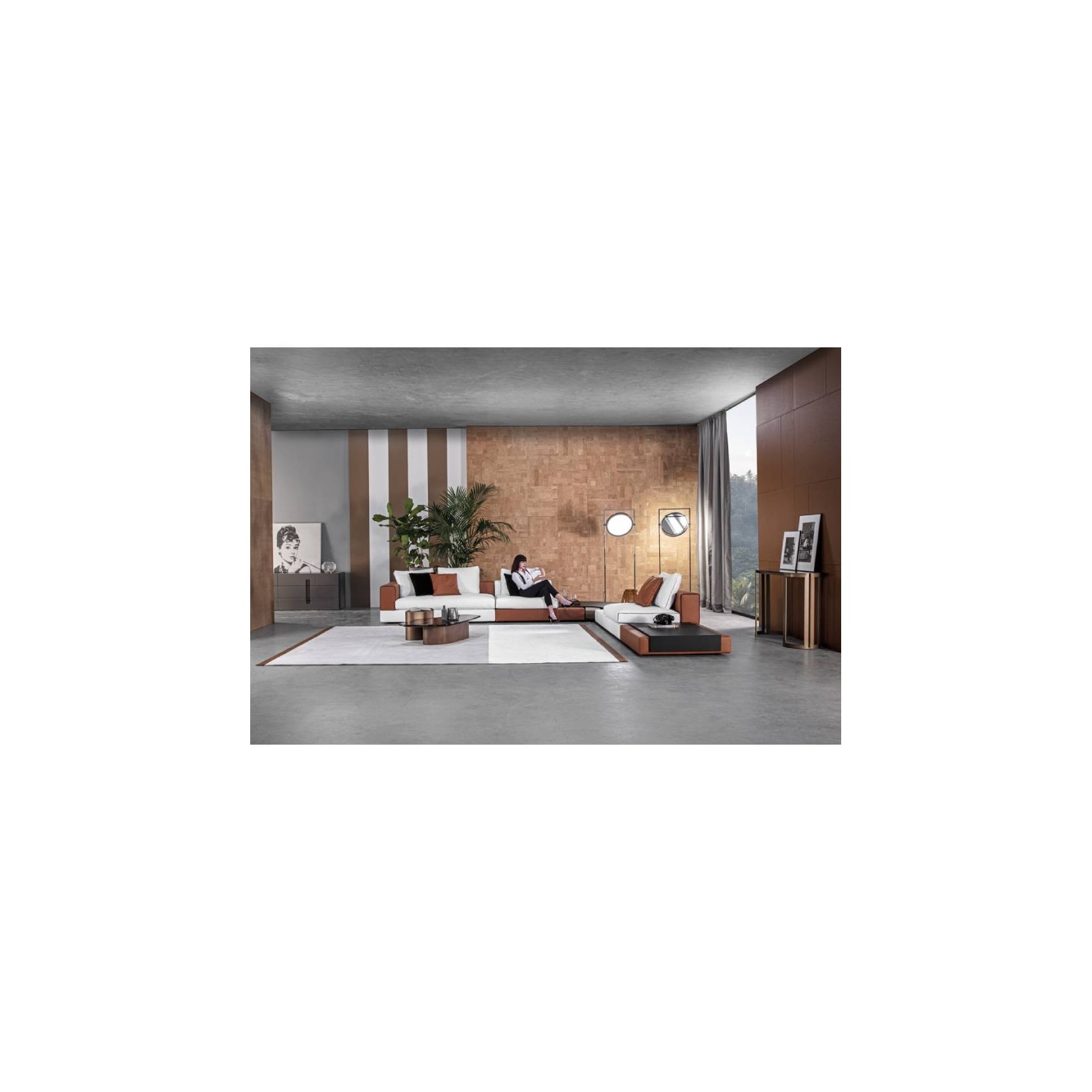 La linea rigorosa e elegante delle forme viene accentuata dall’originale dettaglio decorativo rappresentato dall’esclusiva texture della pelle. La combinazione materica e cromatica del rivestimento, insieme alla presenza degli elementi in legno integrati, definiscono il carattere del divano Laglio. L’infinita combinazione di rivestimenti e accessori permette di creare ogni volta un divano alternativo.