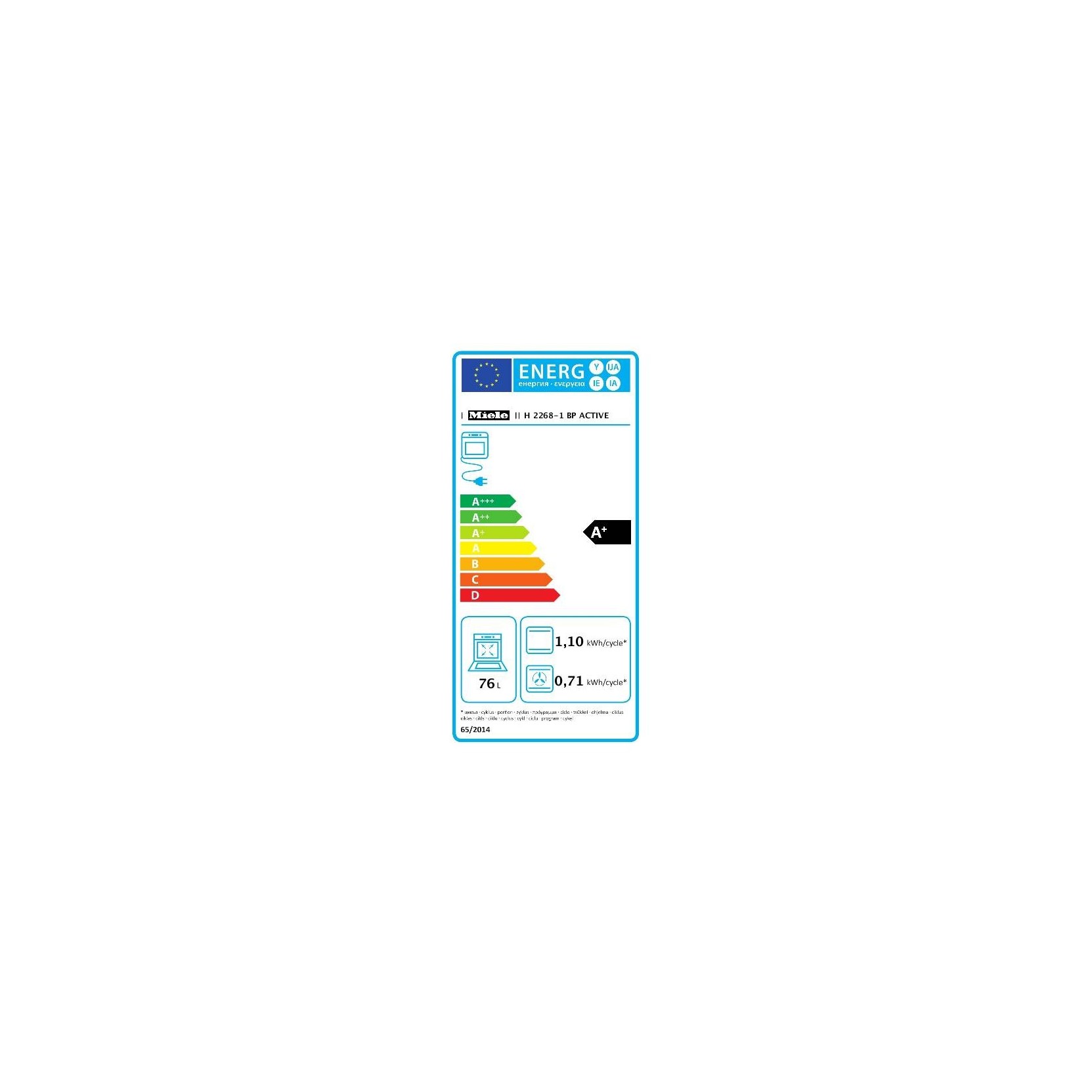 H 2268-1 BP ACTIVE, di Miele, è un forno multifunzione dal design pulito funzionale ed elegante. - Dispaly a 7 segmenti con manopola push/pull – EasyControl - Spazio e flessibilità – vano cottura da 76 l su 5 ripiani - Semplice uso grazie alla guida estraibile FlexiClip - Protegge dalle ustioni: frontale fresco