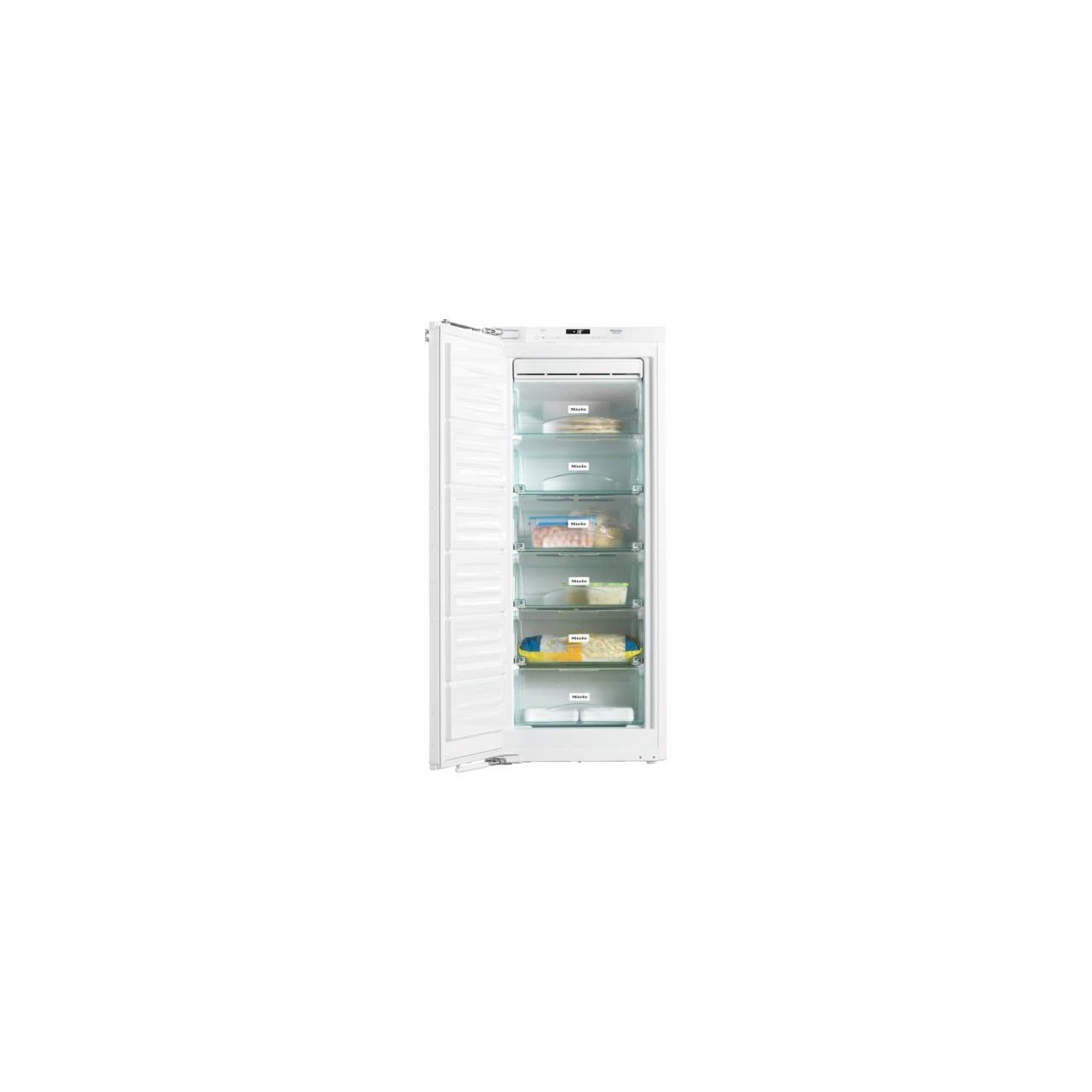 Dati tecnici Larghezza vano d'incasso min. in mm 560 Larghezza vano d'incasso max. in mm 570 Altezza vano d'incasso min. in mm 1397 Altezza vano d'incasso max. in mm 1413 Profondità vano d'incasso in mm 550 Larghezza elettrodomestico in mm 559 Altezza elettrodomestico in mm 1395 Profondità elettrodomestico in mm 544 Peso in kg 58,90 Max. peso frontale sportello vano congelatore in kg 21 Vano frigorifero in l 0 Vano congelatore a 4 stelle in l 159 Volume utile complessivo in l 157 Tempo di conservazione in caso di guasto 9 Quantità massima di congelamento in kg/24 h 9,98 Potenza sonora in dB(A) re1pW 37 Assorbimento di corrente in Milliampere (mA) 1,30 Tensione in V 220-240 Protezione in A 10 Frequenza in Hz 50 Lunghezza del cavo di alimentazione elettrica in m 2,10