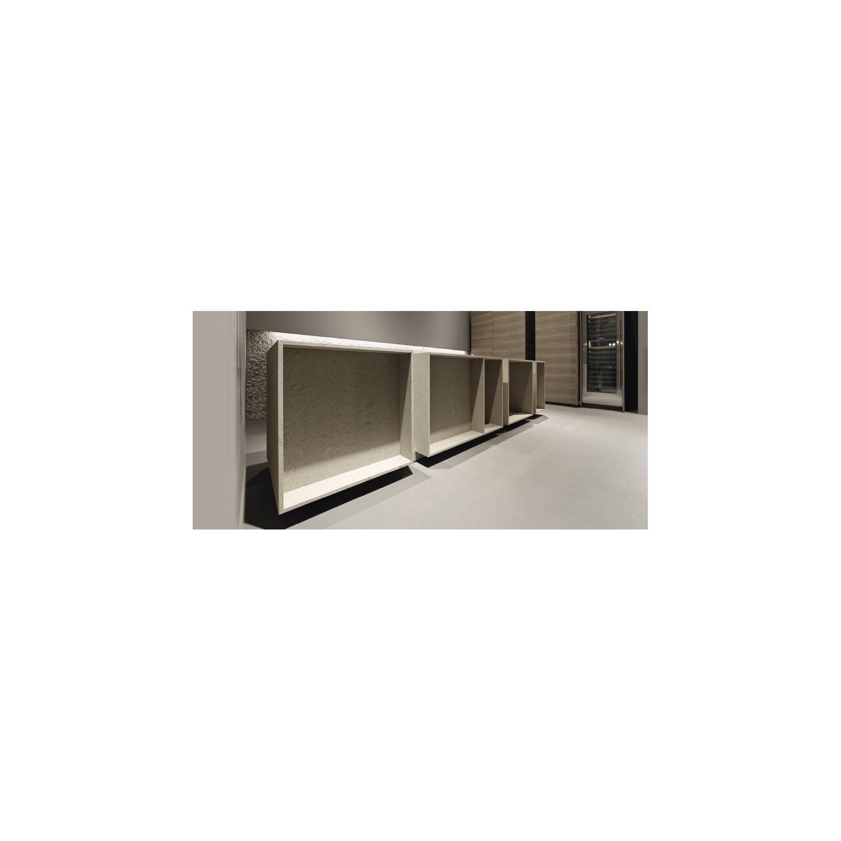 Cucina a blocchi. cubico nella forma ogni blocco ha la sua funzione. anima si propone con dettagli esclusivi in perfetta armonia alla pietra, che diventa il materiale più adatto per una cucina fatta di un forte spirito tangibile. la giunzione del piano di lavoro, dettaglio congenito e imprescindibile di tutte le superfici ampie realizzate con materiali naturali, rappresenta un ostacolo alla continuità visiva. per cancellare questo segno la cucina è in blocchi staccati. ogni singolo elemento, cubico, ha una funzione diversa e autonoma: cottura, preparazione e lavaggio. l’introduzione tecnica più significativa di anima è rappresentata dalla pedana sulla quale vengono posizionati i blocchi. arretrata e nascosta è una struttura estremamente funzionale poiché racchiude tutte le impiantistiche aggiungendo alla cucina l’ergonomia di uno zoccolo.Spedizione 5-6 settimane lavorative